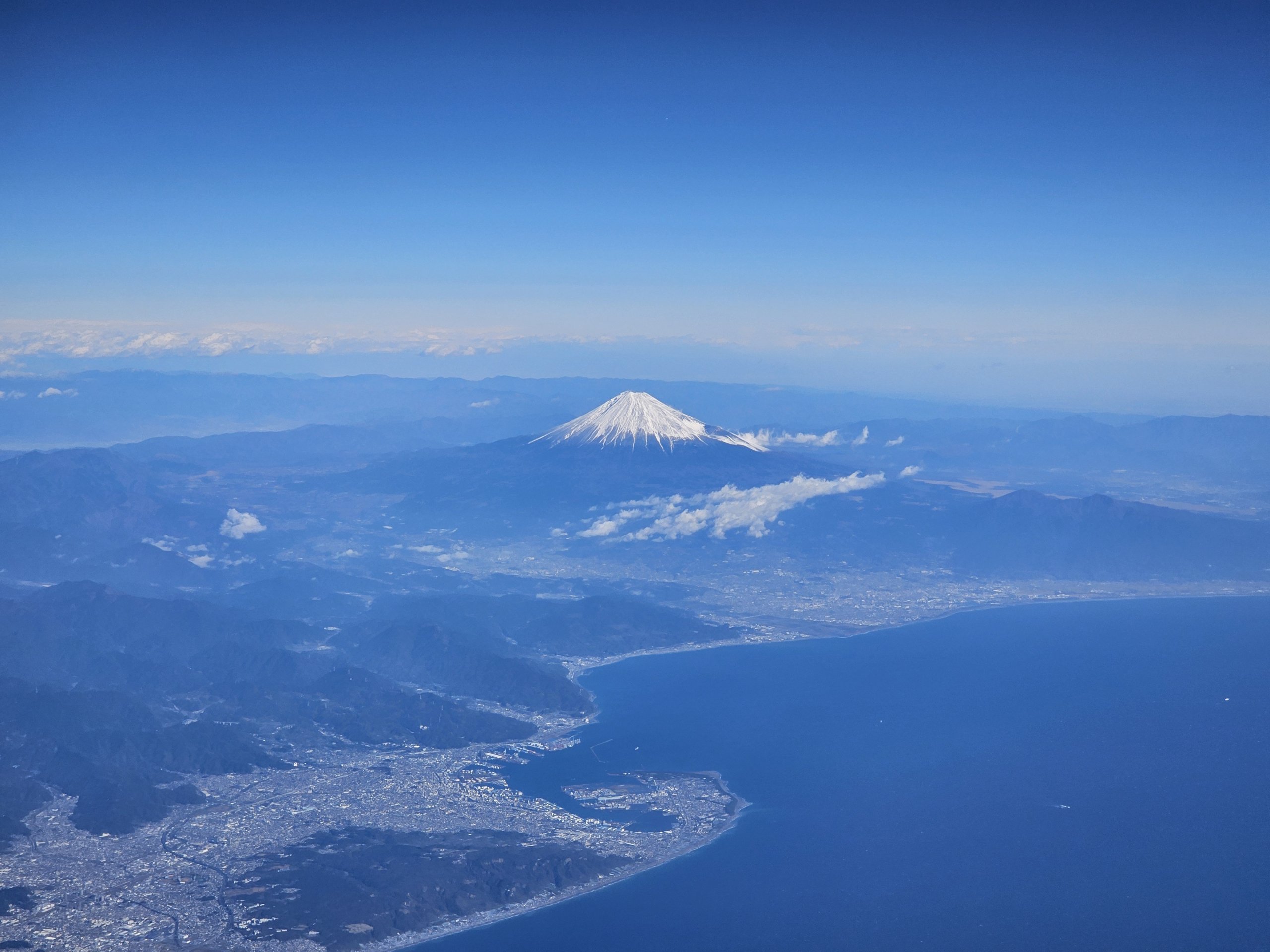 Tokyo'nun diğer havalimanı Narita'ya varışlar genellikle tamamen farklı bir rota üzerinden gerçekleşir ve Fuji oradan görünmez.