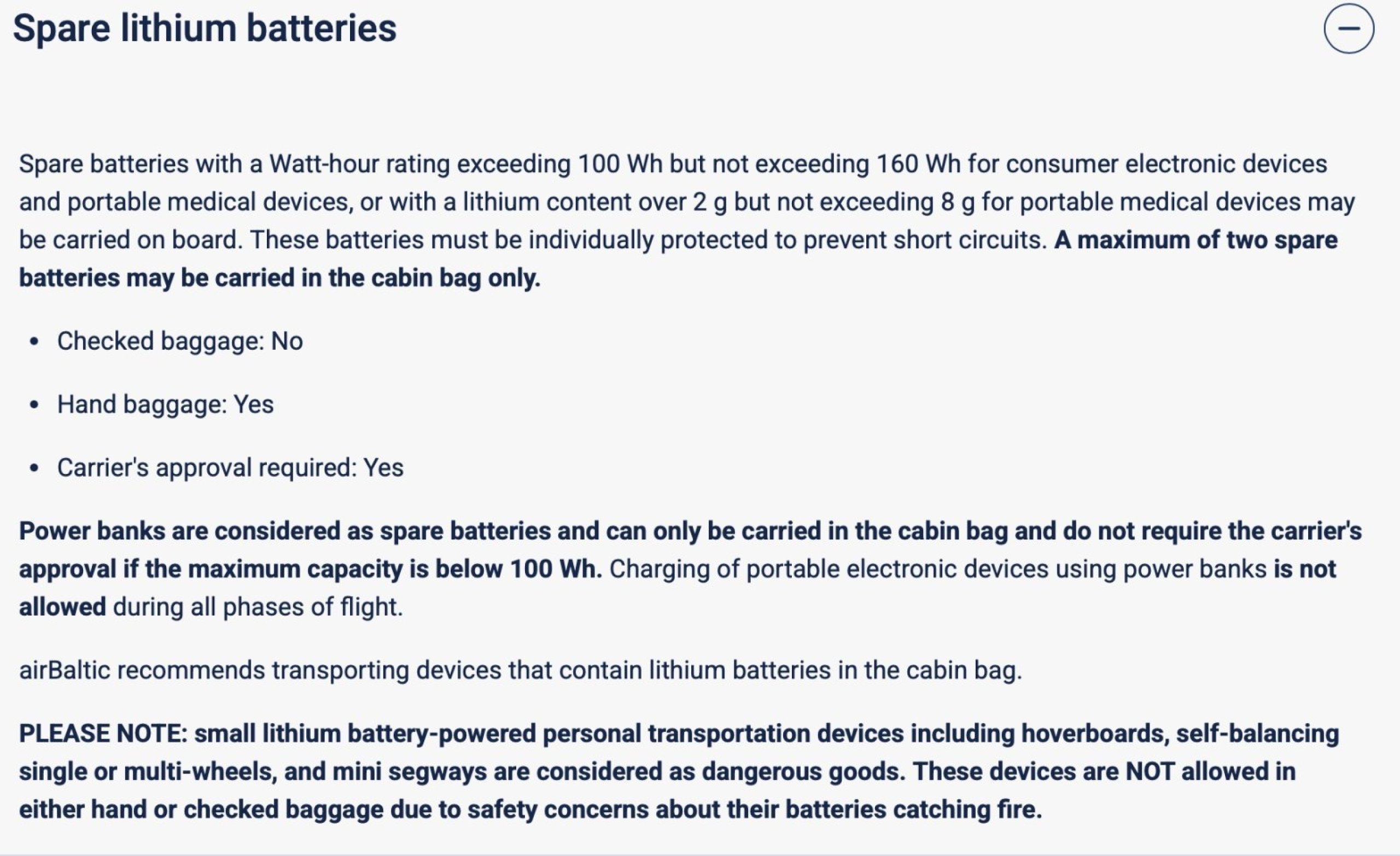 airBaltic de uçak içi güç bankalarının kullanımını yasaklıyor: https://www.airbaltic.com/en/bag...strictions