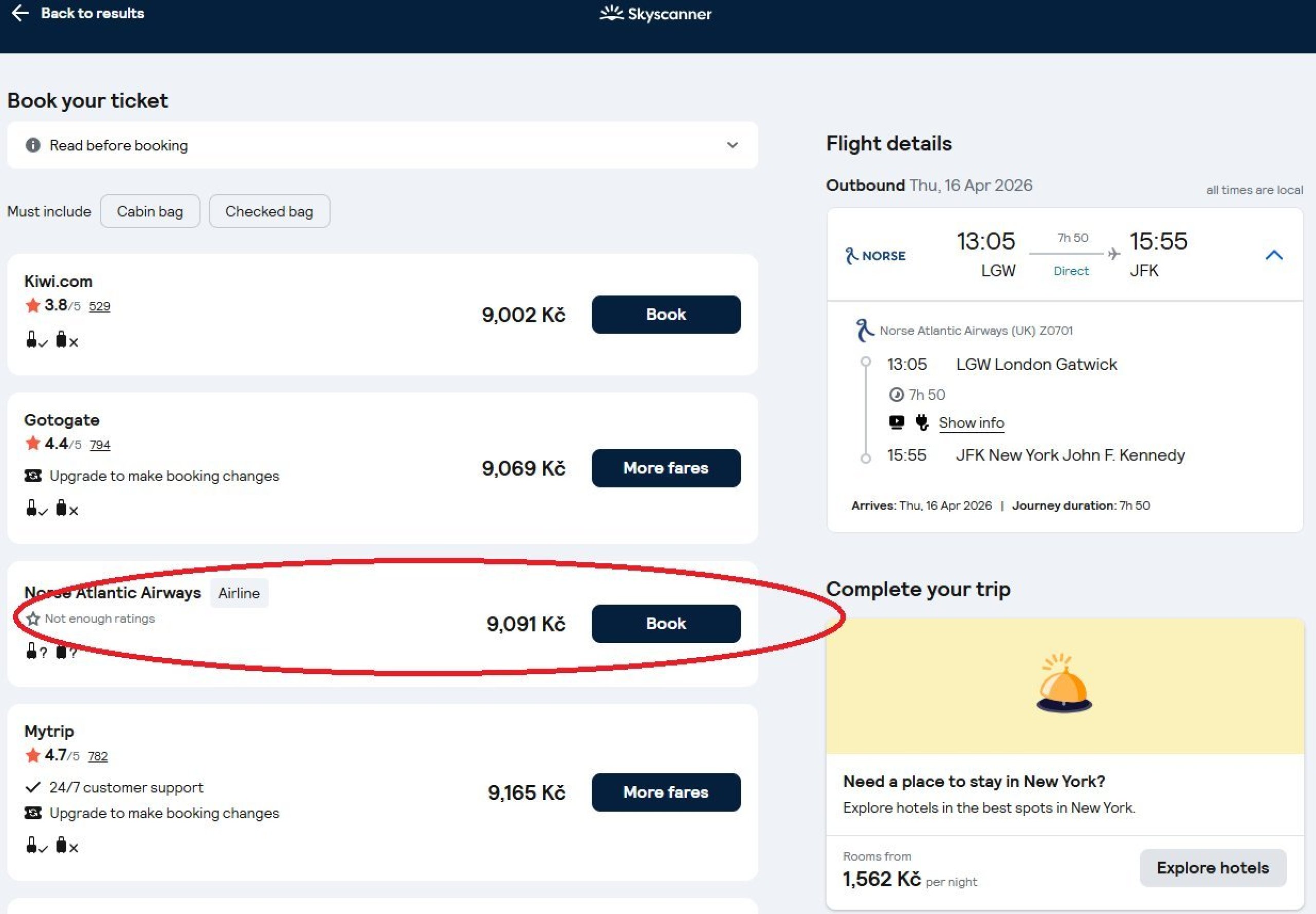 Dolayısıyla genel deneyim büyük ölçüde bileti nereden satın aldığınıza - Skyscanner'dan hangi perakendeciye tıkladığınıza - bağlıdır.