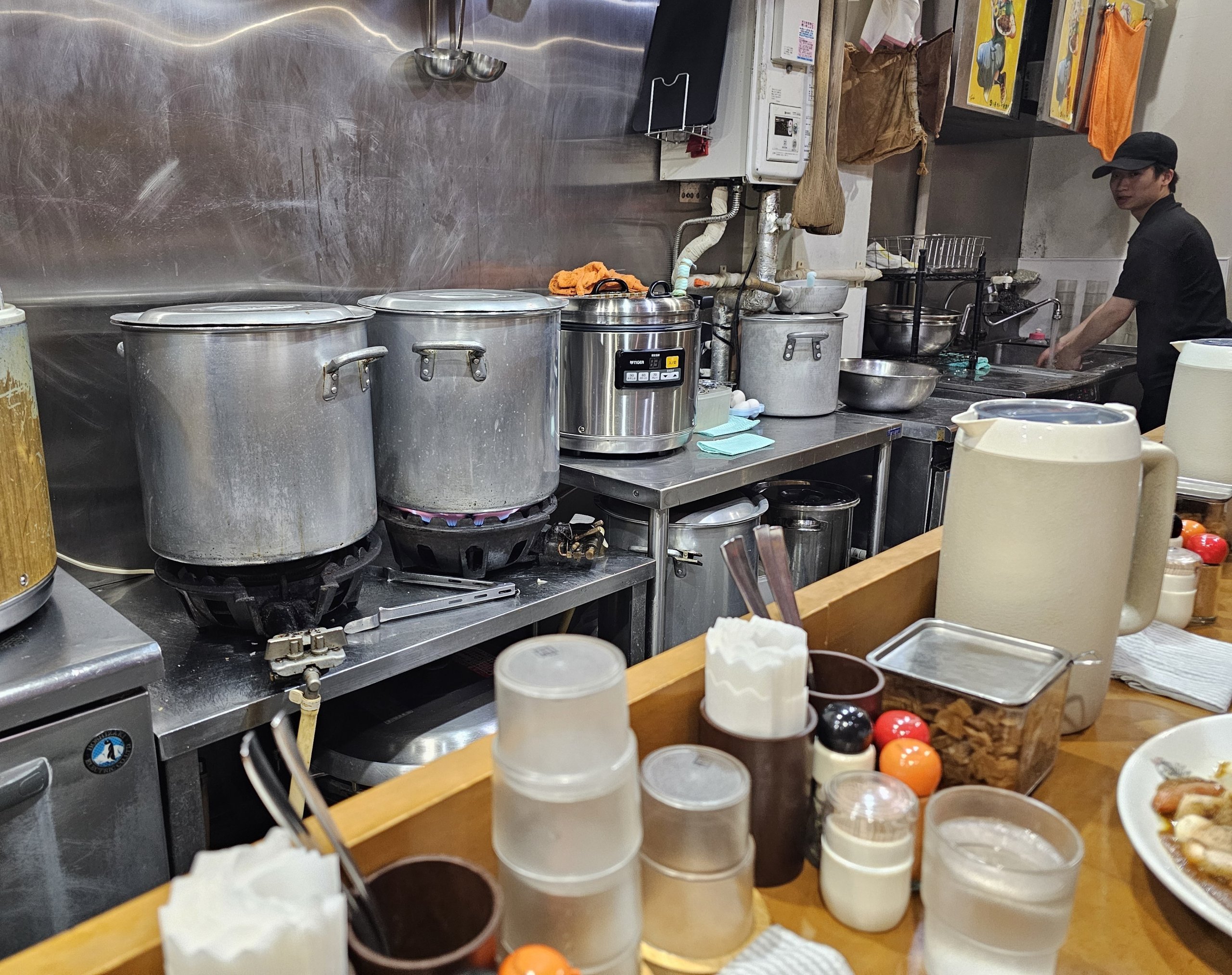 Ramen iyi, ücretsiz termos su ve yandaki tezgahtan alabileceğiniz çeşitli küçük atıştırmalıklar mevcut.