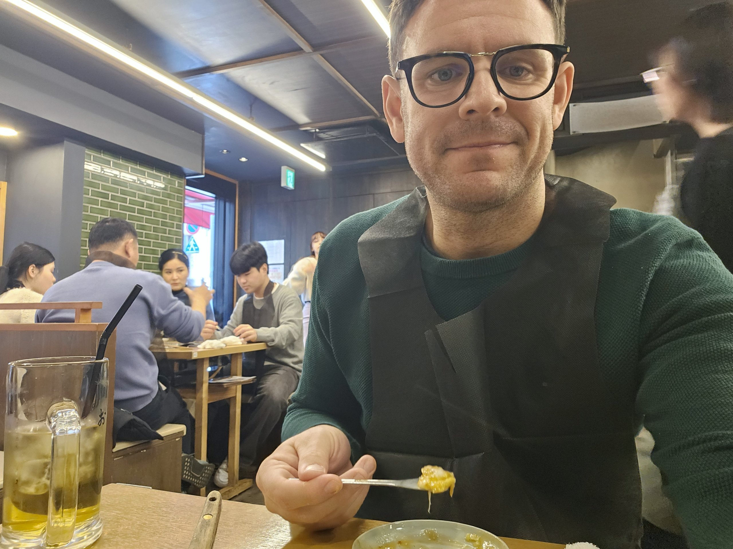 Bu restorandaki monjayaki, personel tarafından masanızda bir ızgarada hazırlanıyor, bu benim için harika bir deneyim.