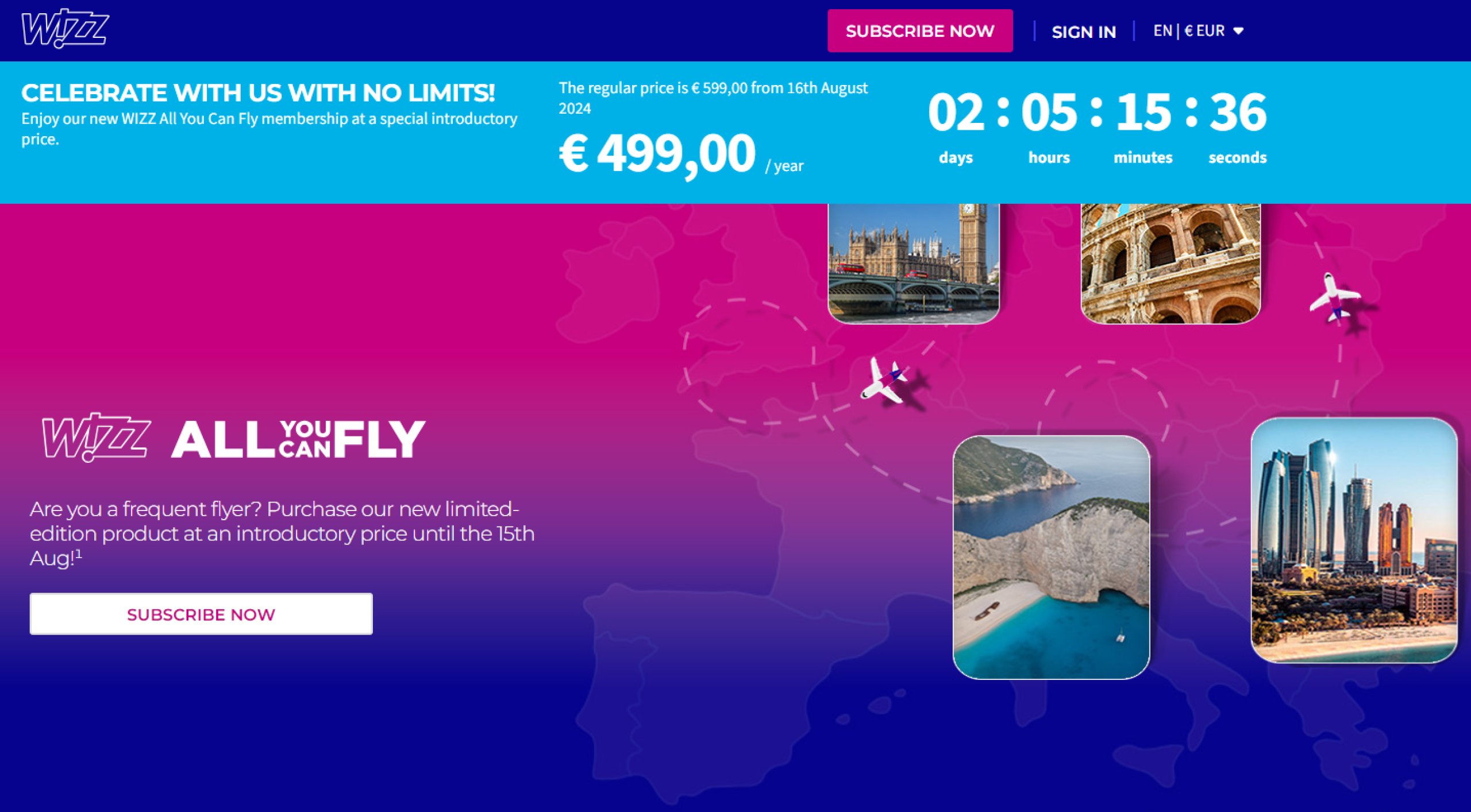 All You Can Fly aboneliği, satın alma tarihinden itibaren 12 ay boyunca geçerlidir. Ancak üyeliğinizi wizzair.com adresinden şimdi satın alabilirsiniz.