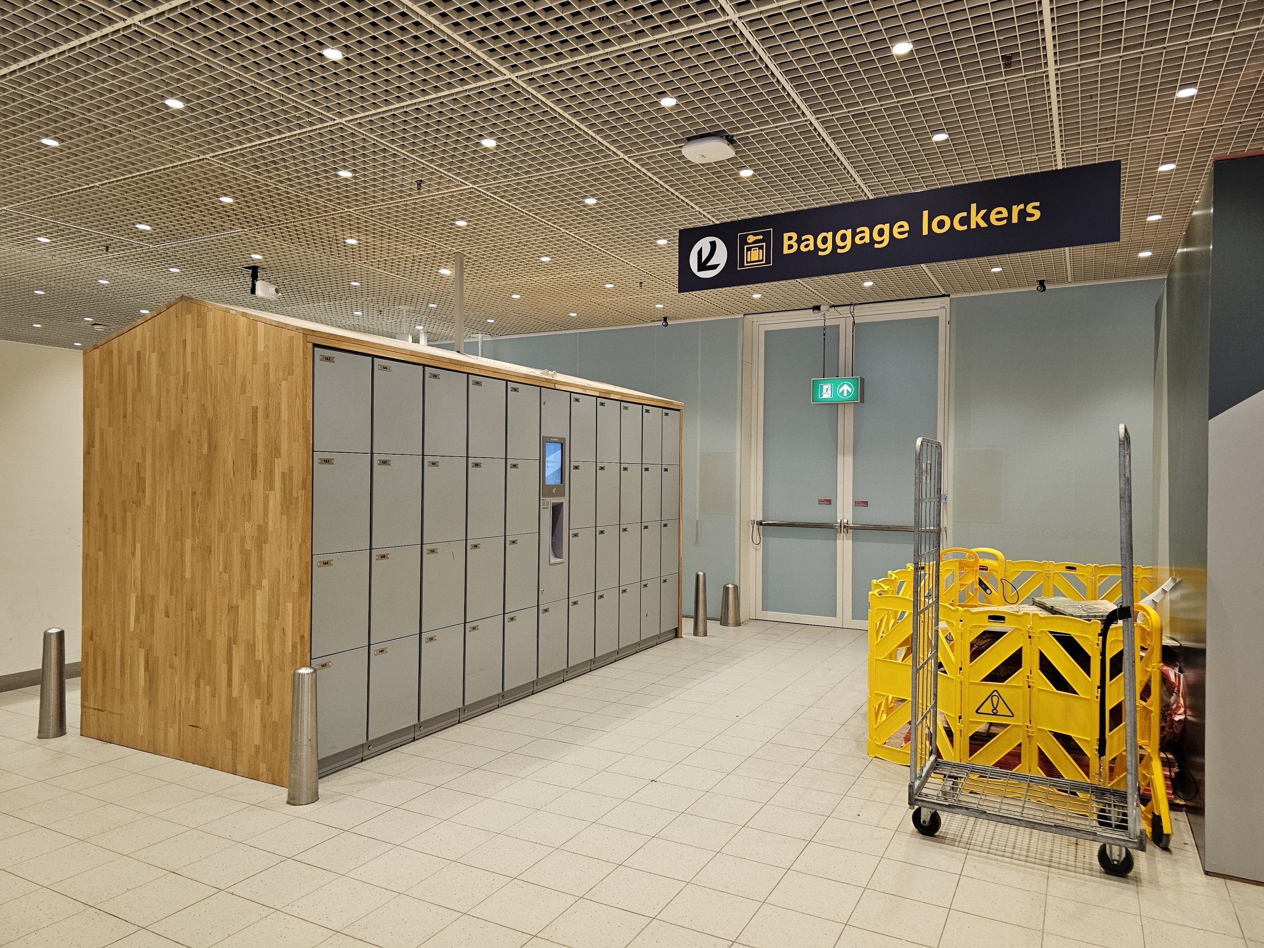 Ayrıca bagajlarınızı geçiş alanında bulunan ve tüm dolap boyutları için 24 saat boyunca 8 avro sabit ücret uygulanan kilitli dolaplara da bırakabilirsiniz.