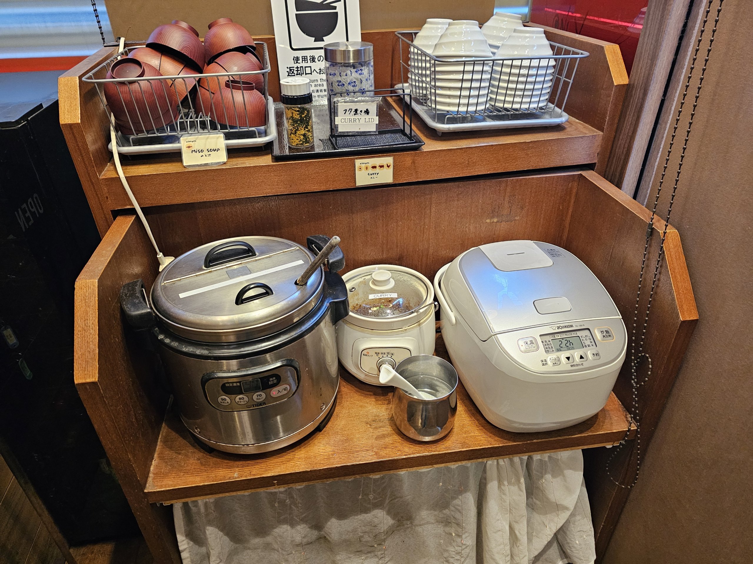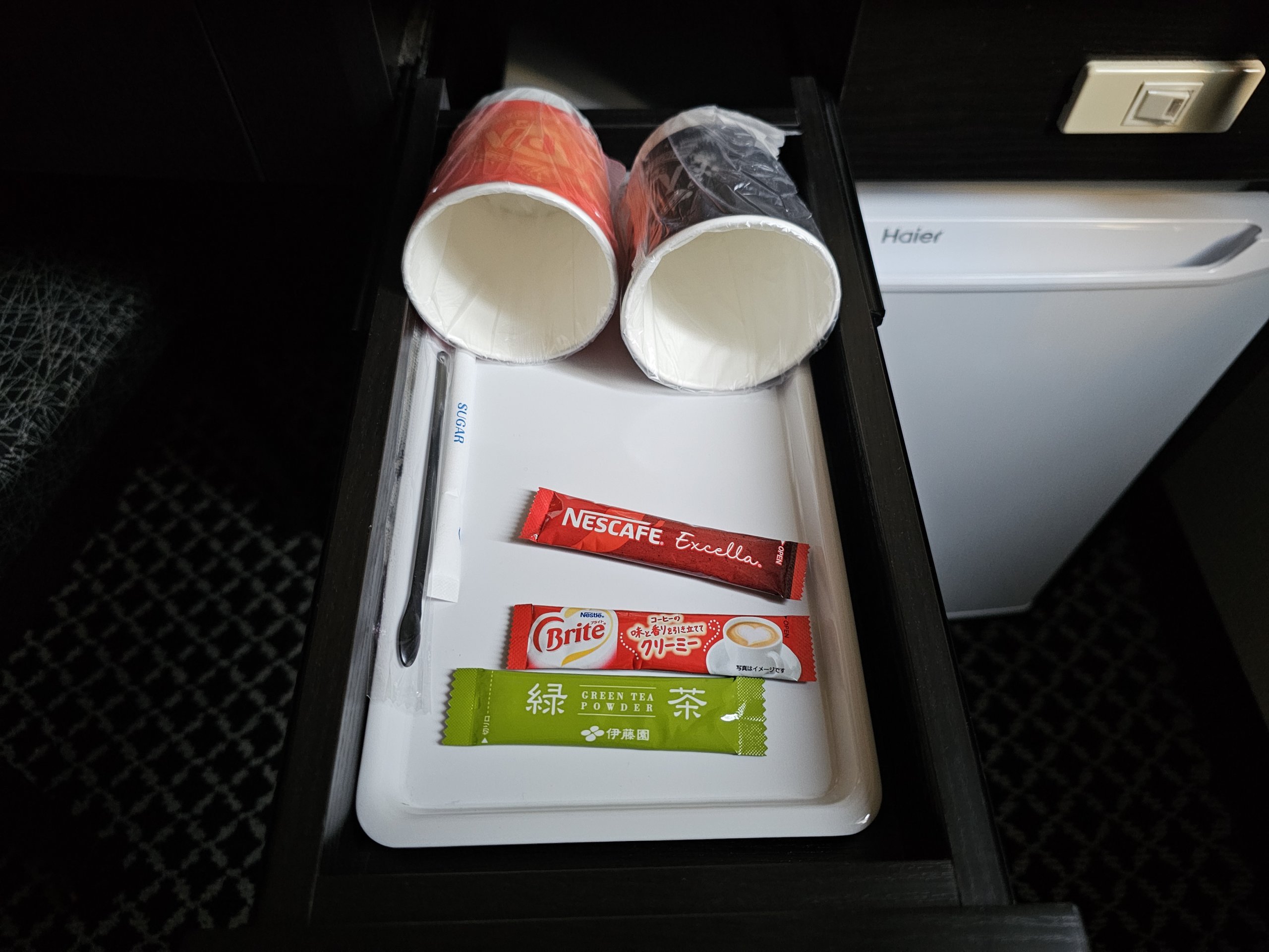 Resepsiyonda soğuk içecek makinesi de bulunmaktadır (sadece nakit), ancak 7/24 açık olan ve kartla da ödeme yapılabilen otelin hemen karşısındaki Lawson mini marketi kullanma olasılığınız daha yüksektir.