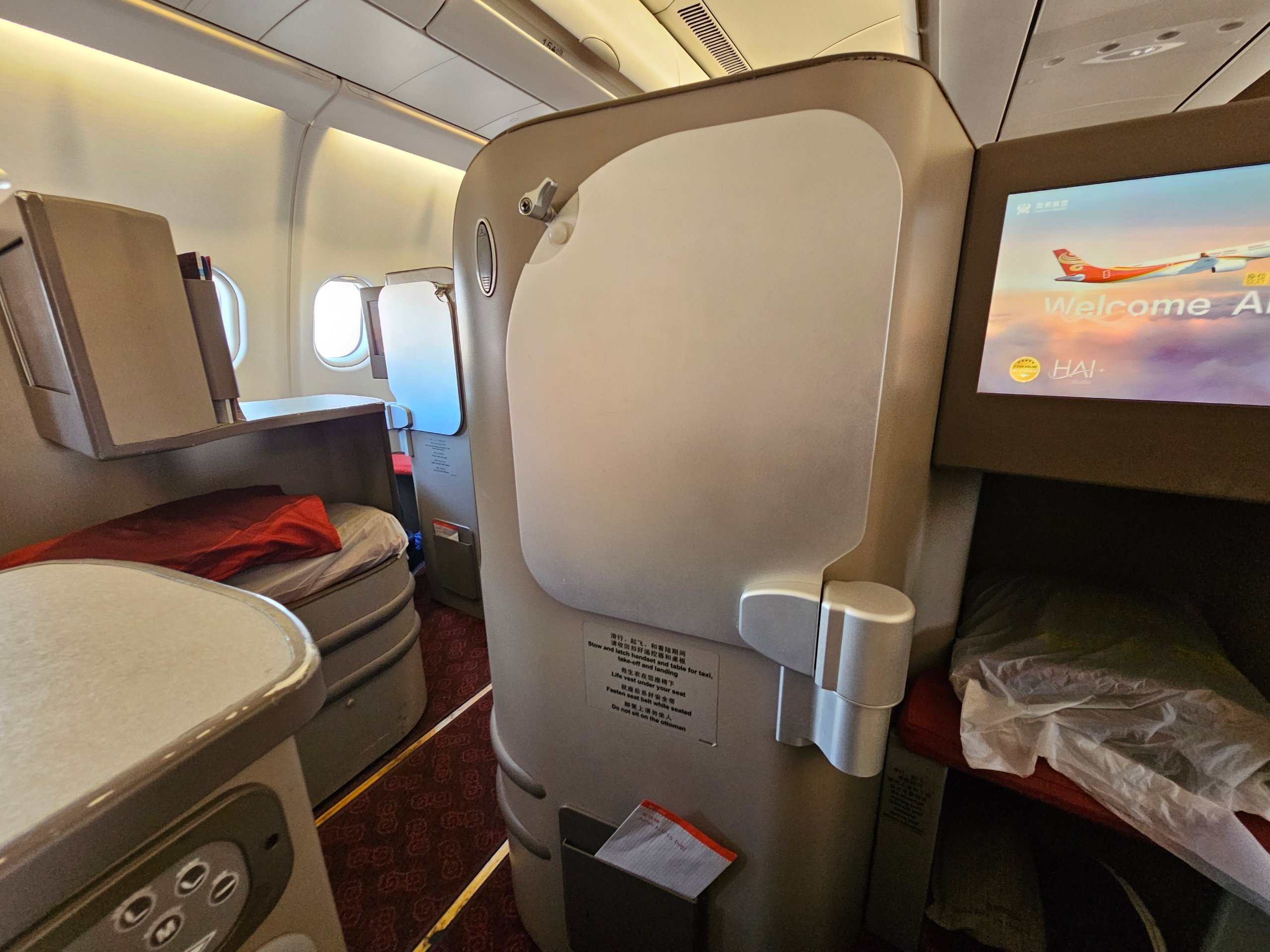 Stelia Solstys konfigürasyonundaki Hainan Airlines Airbus A330-300 tamamen düz bir yatak ve sağlam bir konfor sunuyor. Ancak Prag'daki ilk segmentle karşılaştırıldığında gizlilik daha zayıf ve genel olarak daha az premium bir his veriyor.