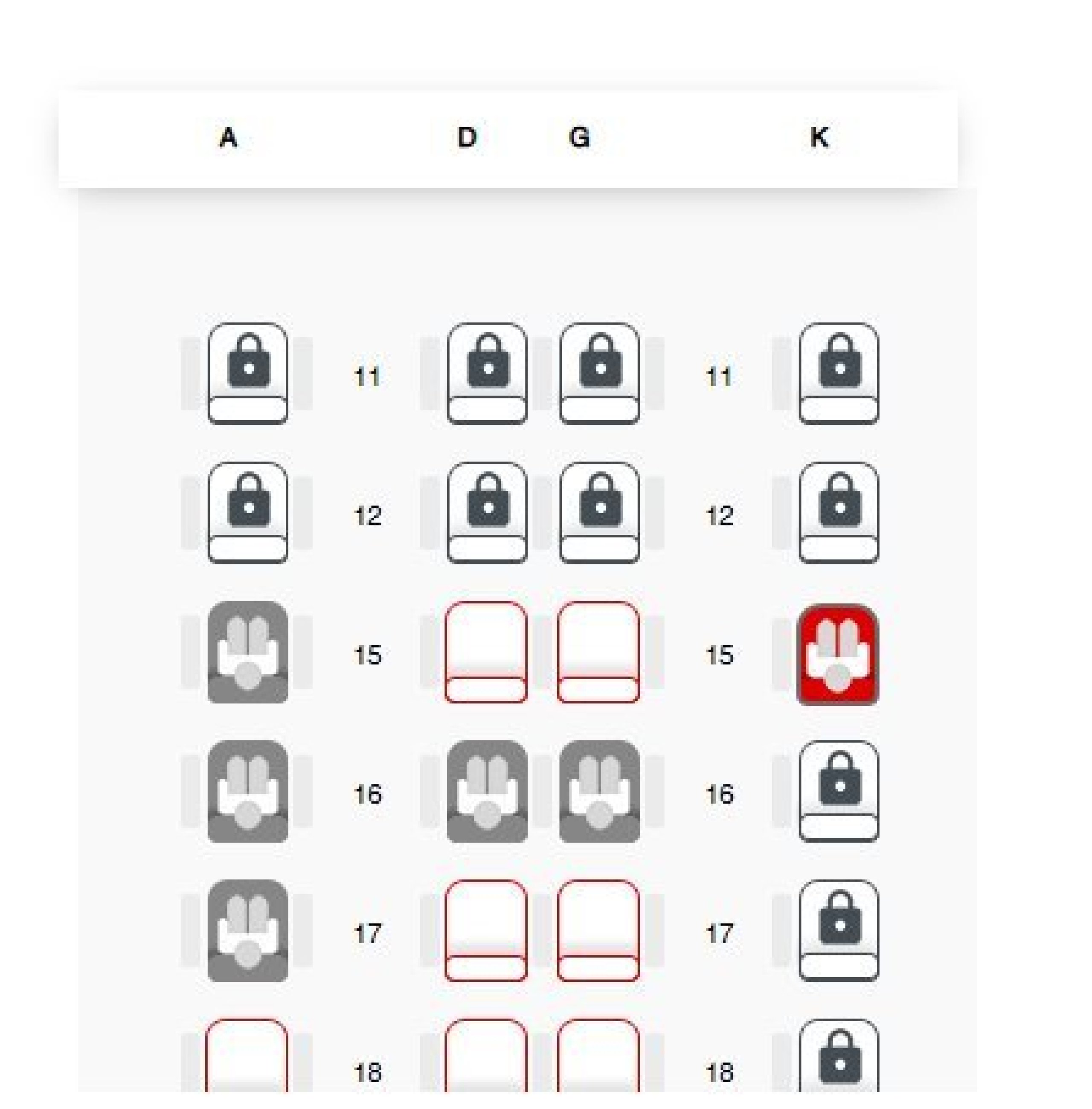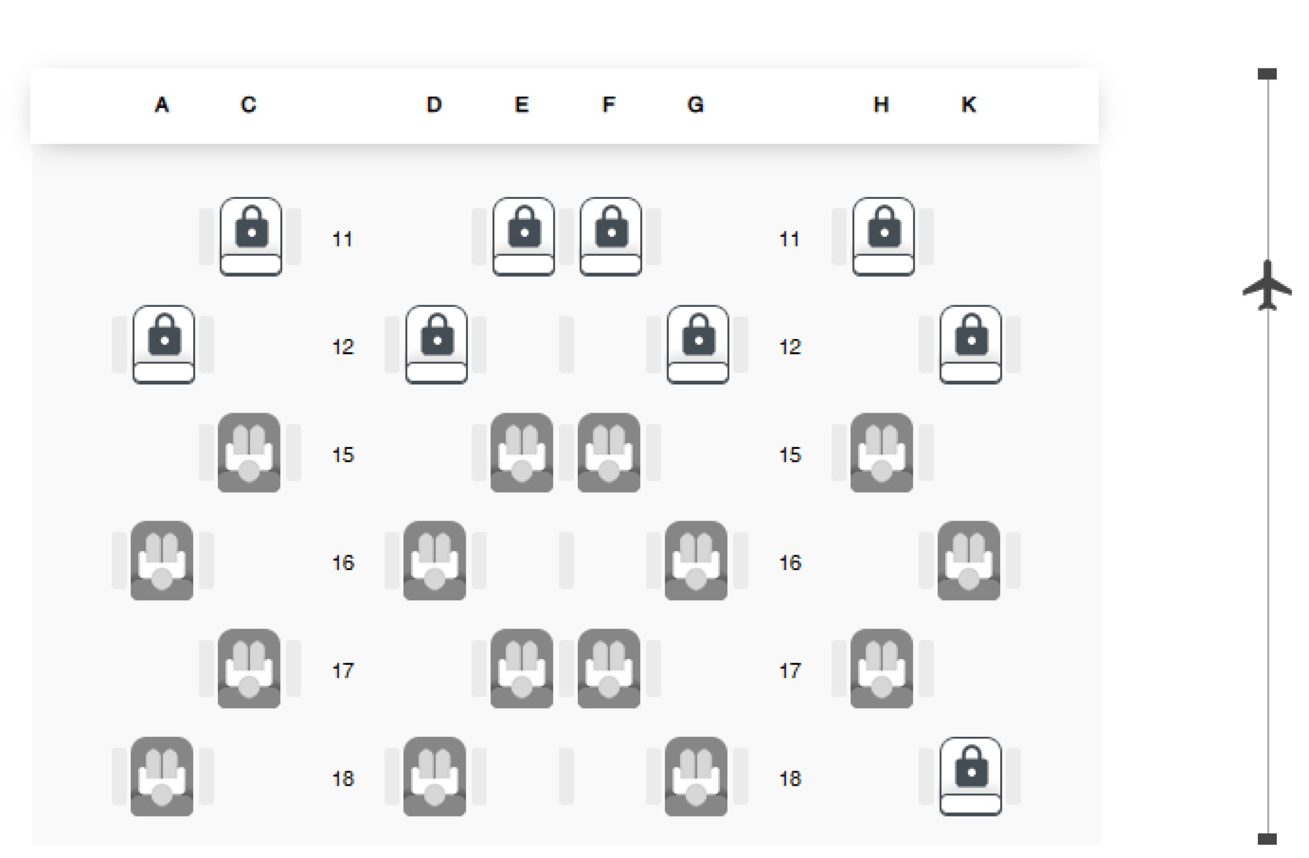 Eğer bir çift olarak uçuyorsanız, bu konfigürasyon ortadaki her sıranın birbirine yakın koltuklara sahip olması gibi küçük bir avantaja sahiptir. Ne yazık ki, omuz hizasında sağlam bir perde ile ayrılmışlar ve bu perde hiçbir şekilde kaldırılamıyor.