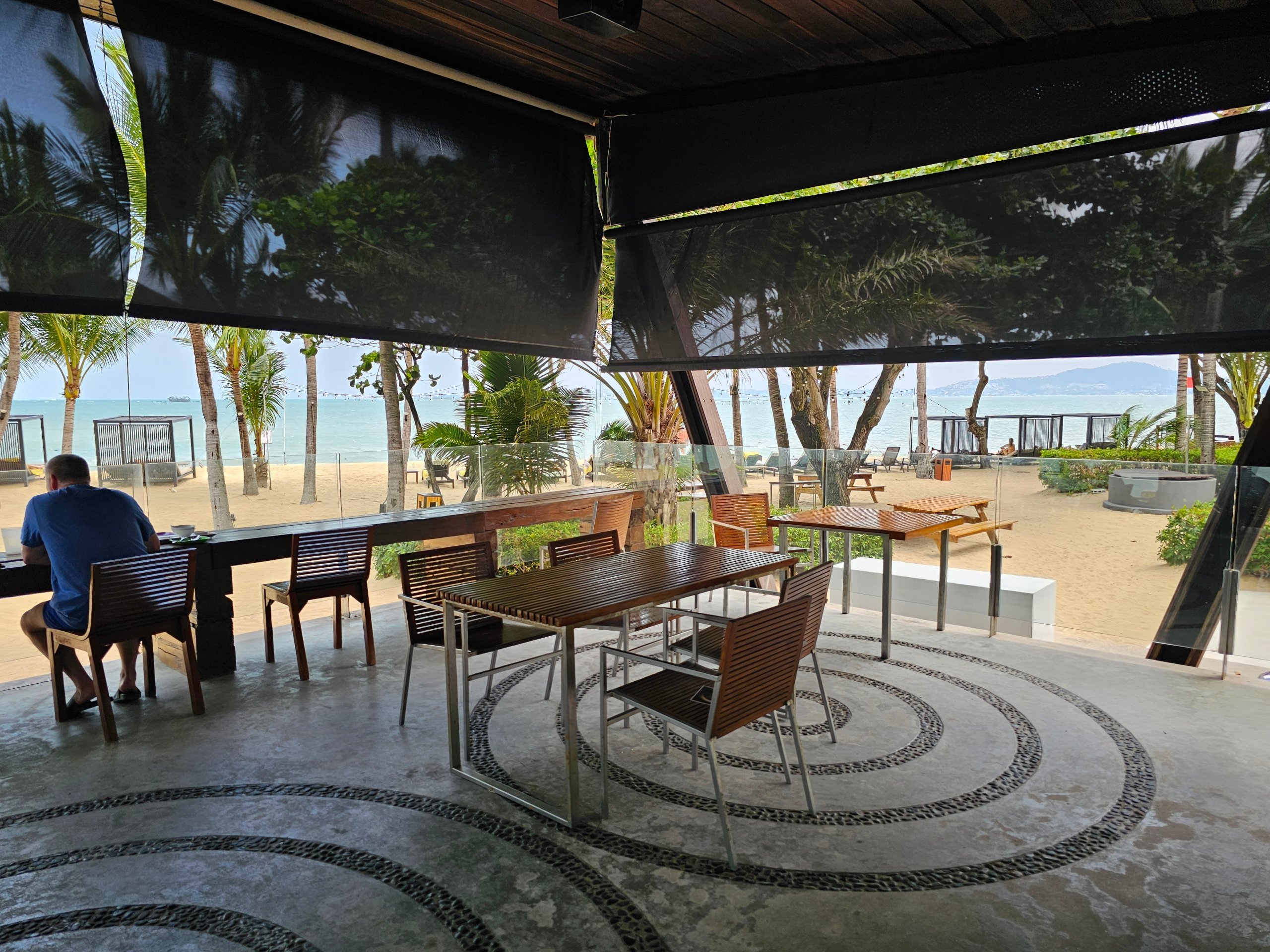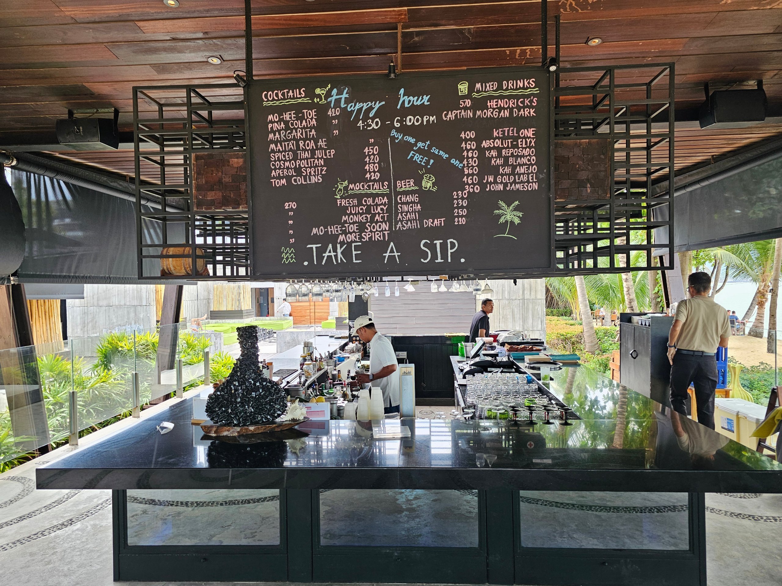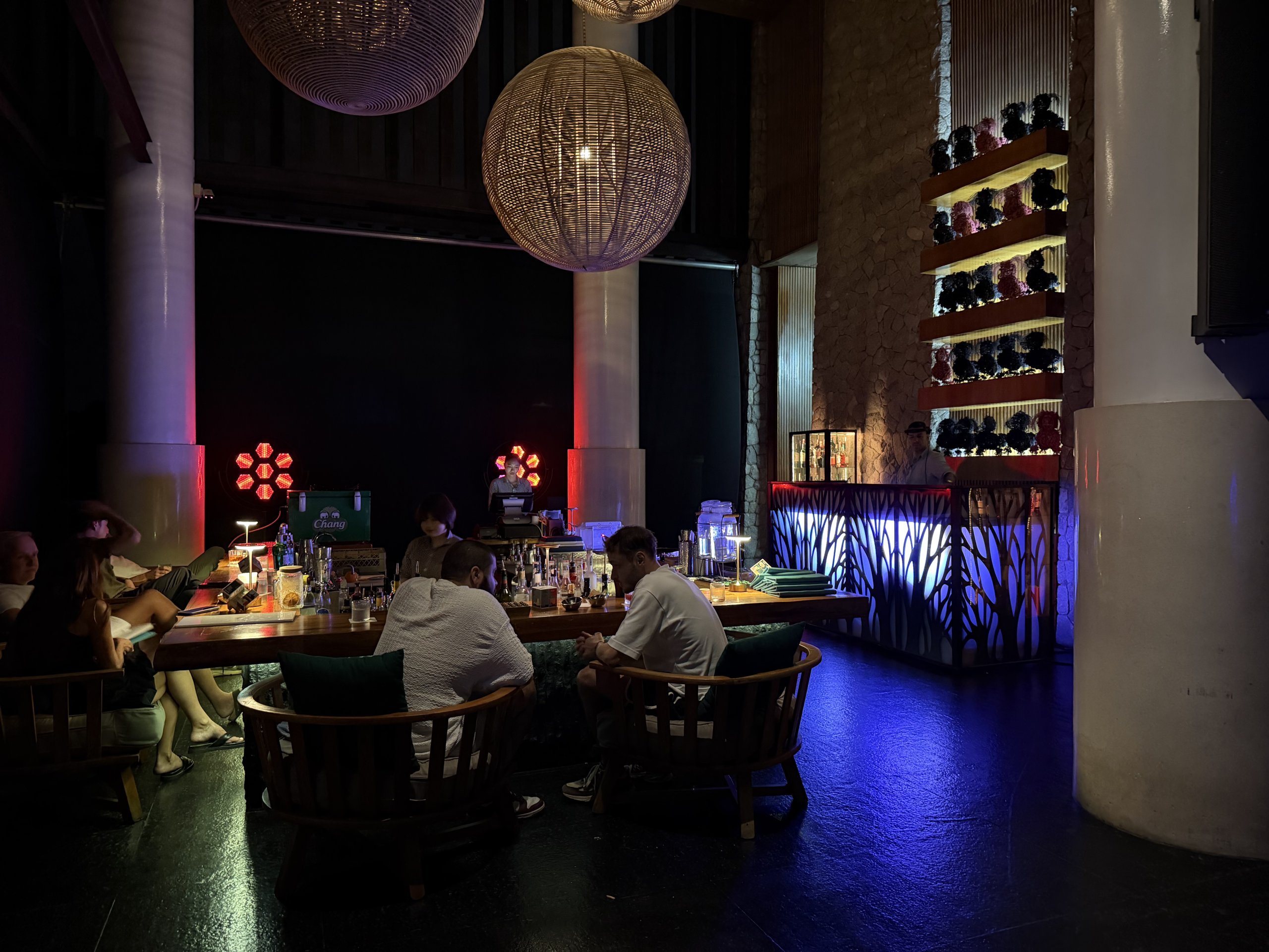 Standart bar, neredeyse yüzeyin altına gömülmüş kanepeler ve "W" harfi bulunan büyük dairesel bir "havuz" ile tamamlanmaktadır. Denizin ve yakındaki Koh Phangan adasının nefes kesen manzarası atmosferi tamamlamaktadır.