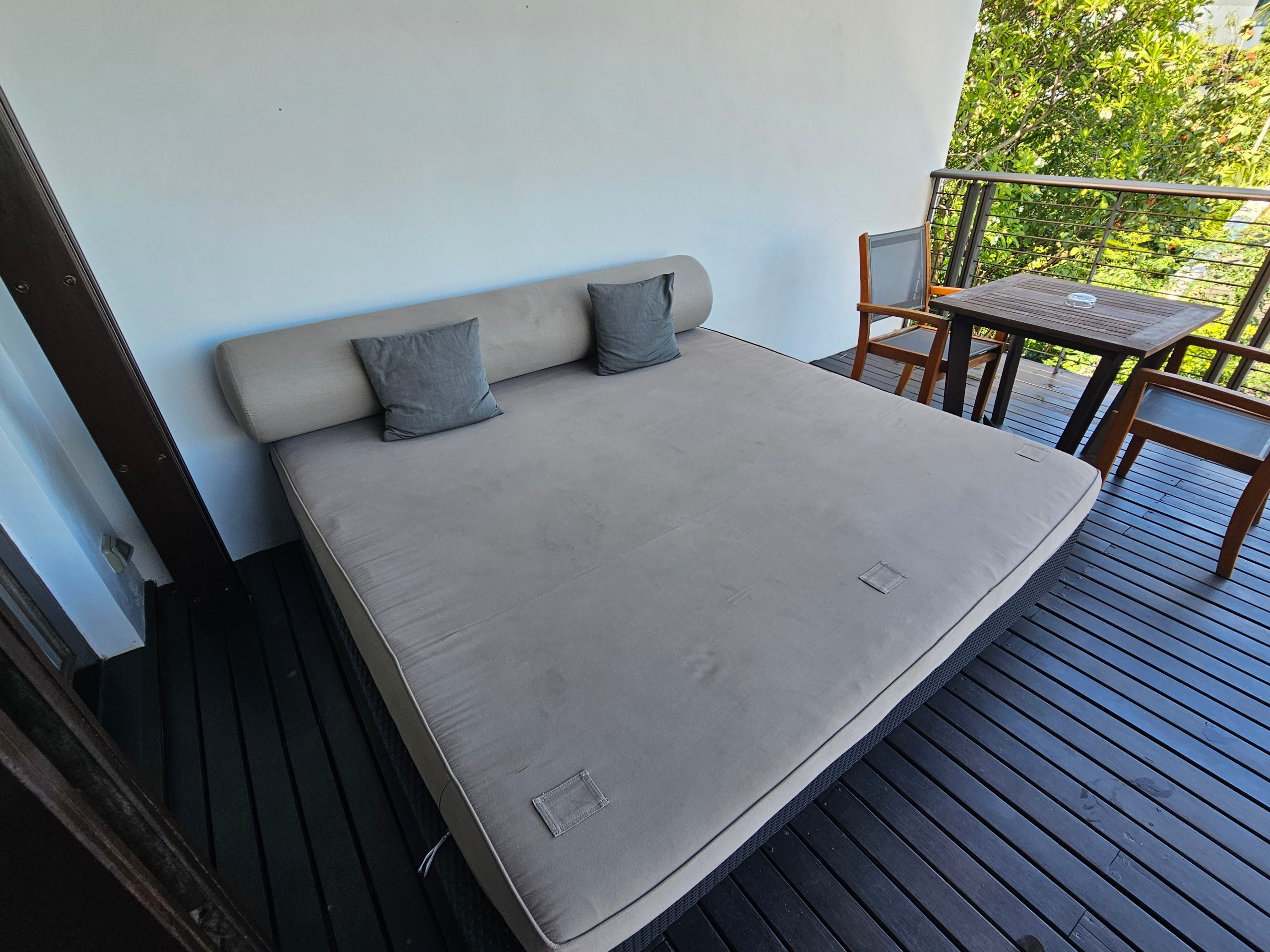 Aksi takdirde, muhtemelen daha yüksek bir fiyata, denizin daha "ufukta" olduğu ve aslında yandaki bungalovun çatısına baktığınız deniz manzarası, bu lüks ve pahalı konaklama birimine gerçekten uymuyor.