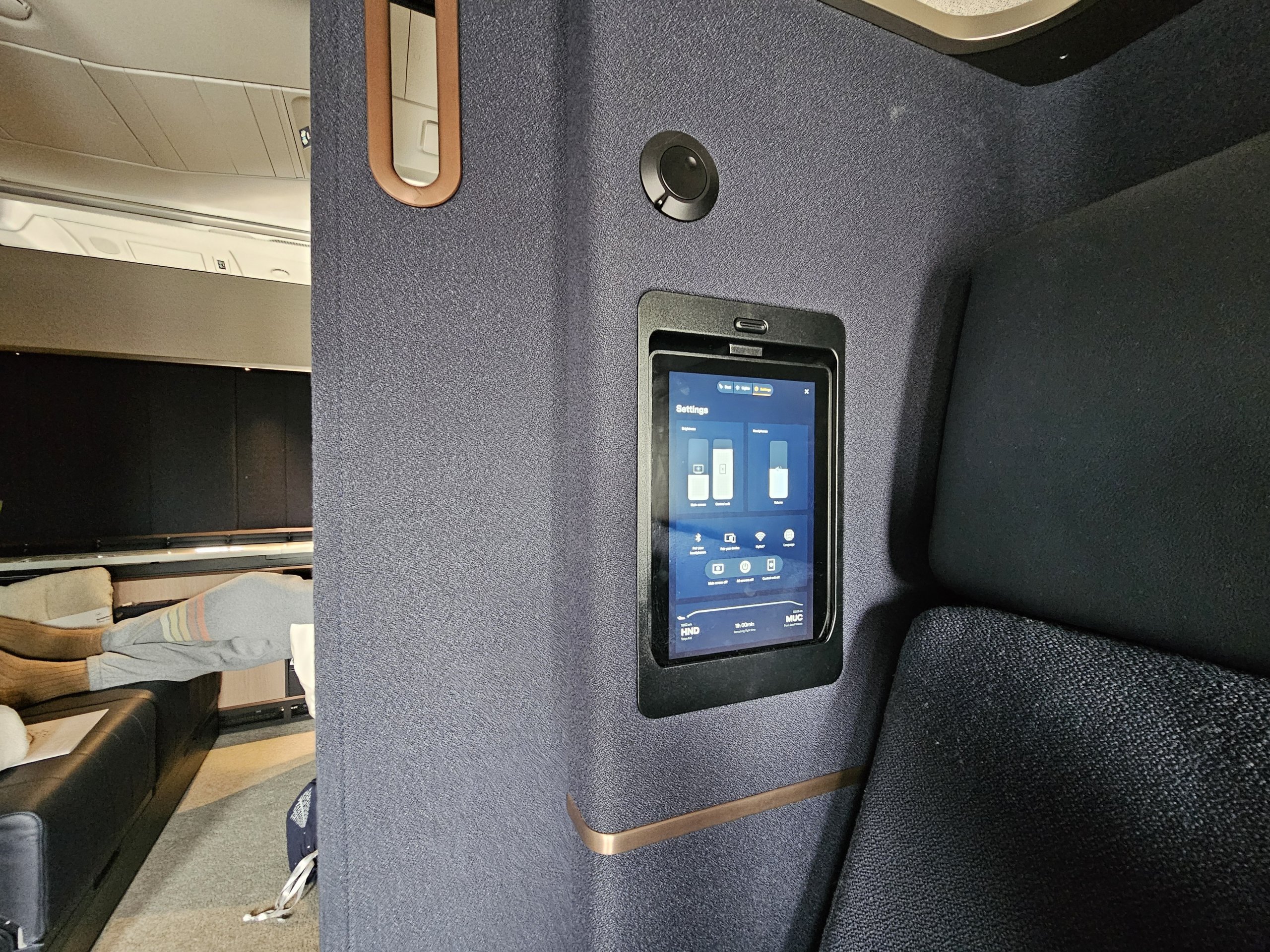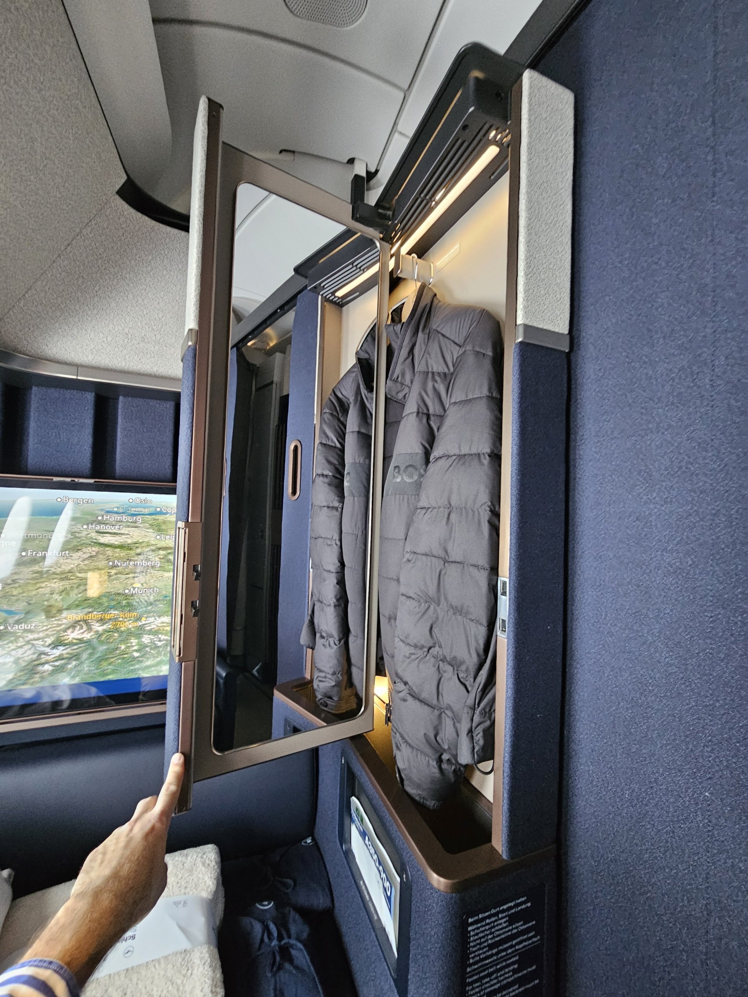 Tasarım Almanca'da oldukça sade, ama benim için çok zarif! Elbette, Air France'ın yeni La Premiere'i tasarım açısından daha komik olabilir, ancak yine de First Class'ta benim için kesinlikle gerekli olan tabandan tavana bir kapı veya perdeye sahip değil.