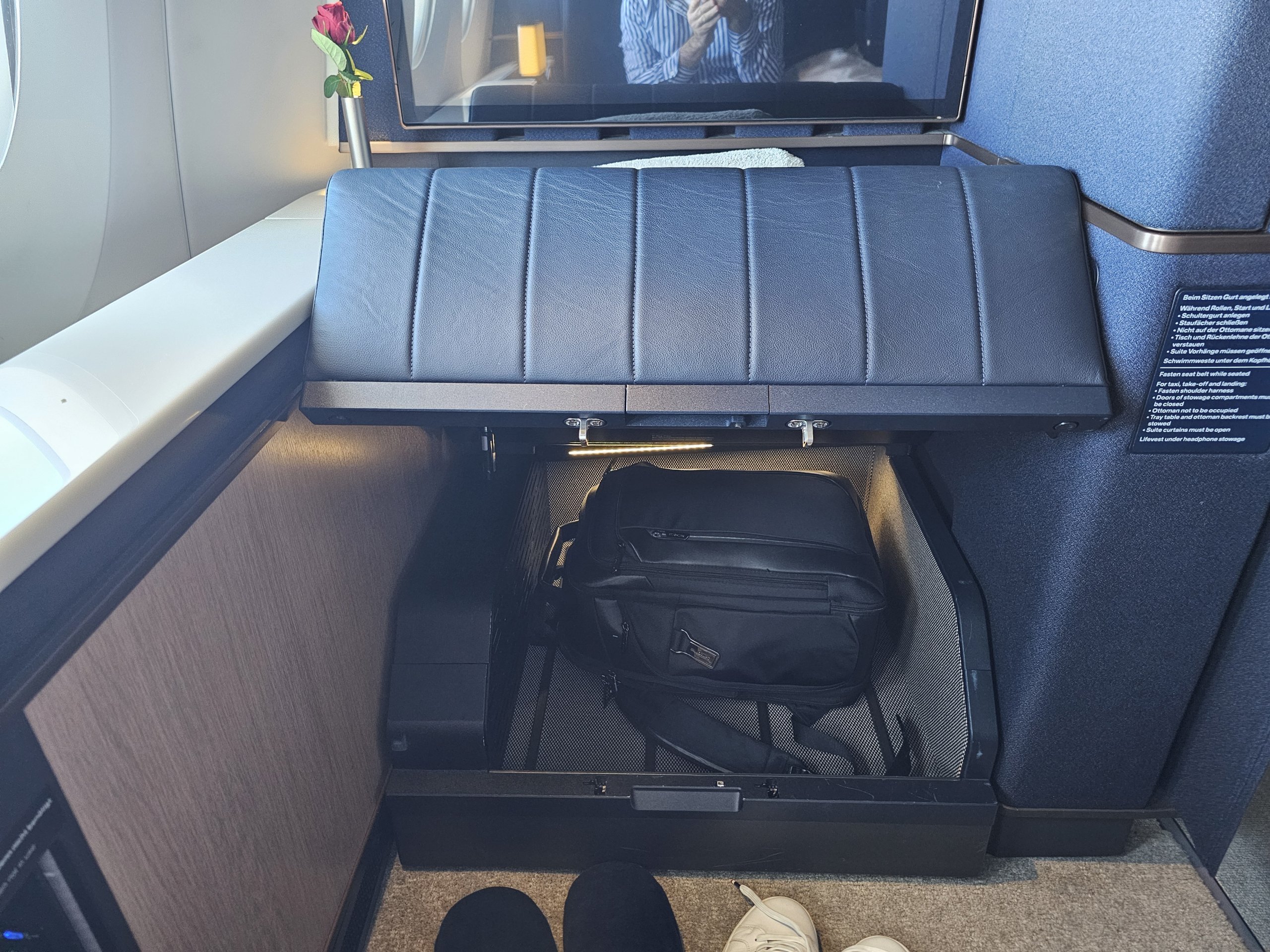 Eski First Class'taki koltuklarla karşılaştırıldığında, biraz daha az saklama alanı var. Yine de nispeten yeterli bir miktar.
