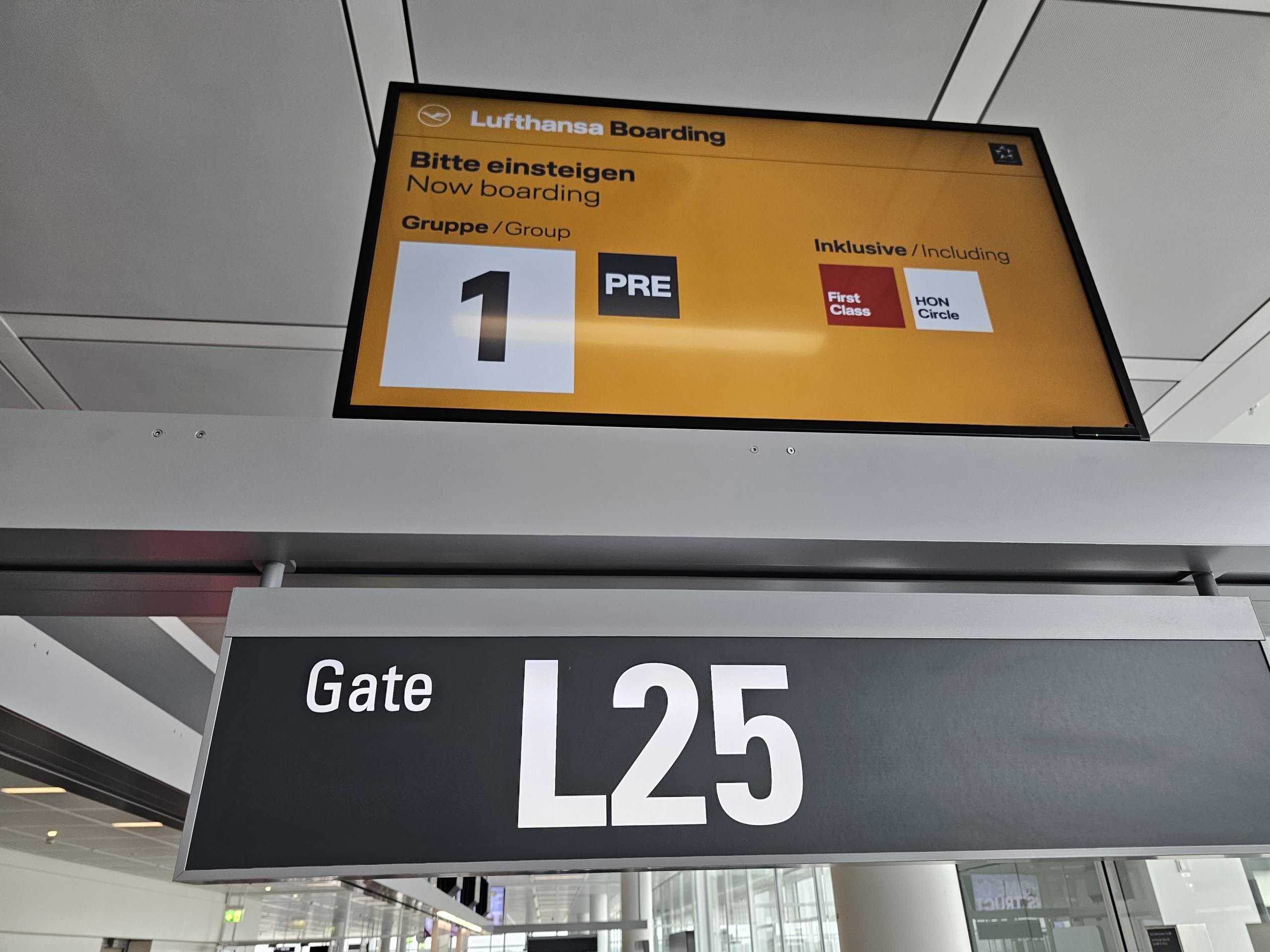 Münih'te uçak değiştirmek için 1,5 saatimiz vardı, ancak Prag'dan gelen uçuş neredeyse 40 dakika rötar yaptı, bu yüzden lounge'a gidemedik.