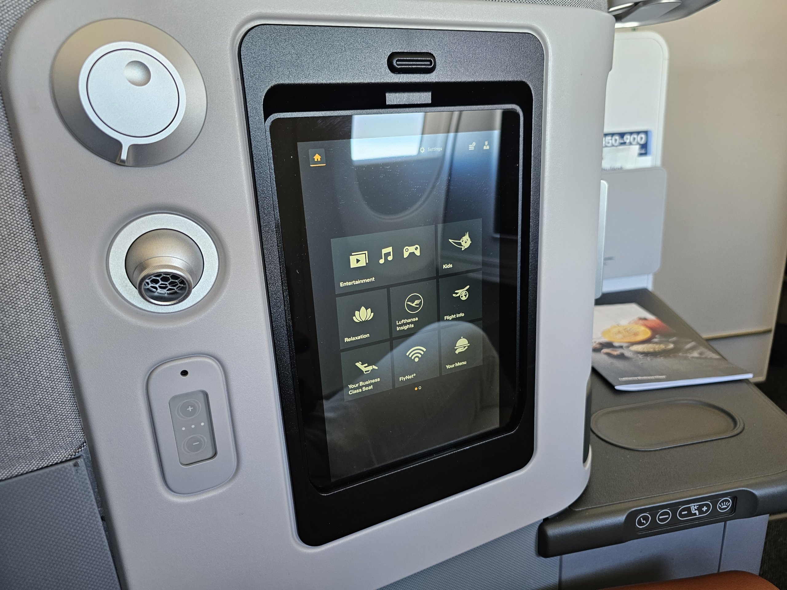 4K çözünürlüklü monitör harika. Kontroller ya doğrudan monitör üzerinde dokunmatik ekran ya da koltuktaki bir tablet aracılığıyla yapılır, böylece IFE'yi koltuk yatırılmış haldeyken veya yataktan kontrol edebilirsiniz.