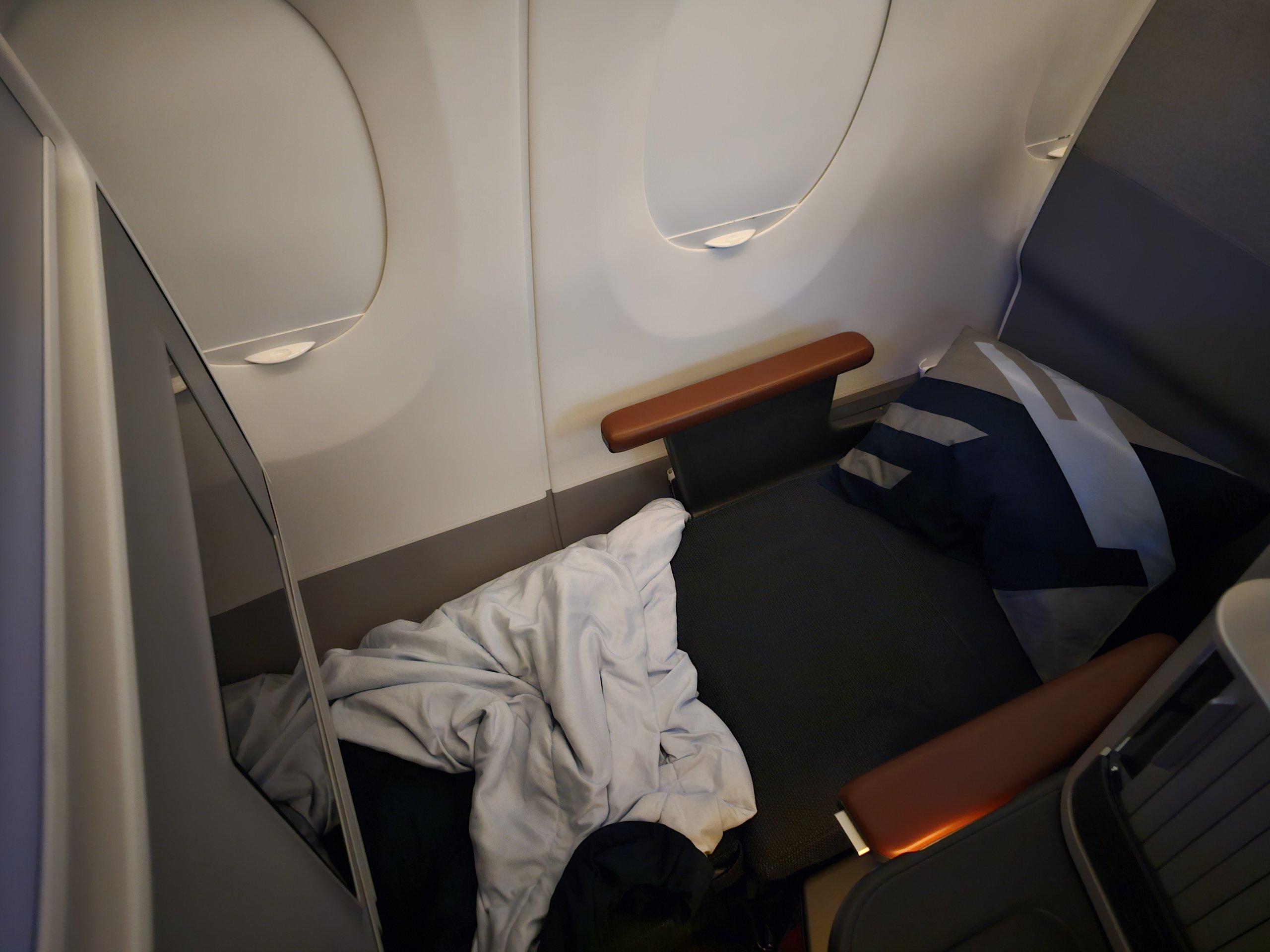 Gündüz uçuşu olmasına rağmen yatağı business class'ta denemek zorunda kaldım.