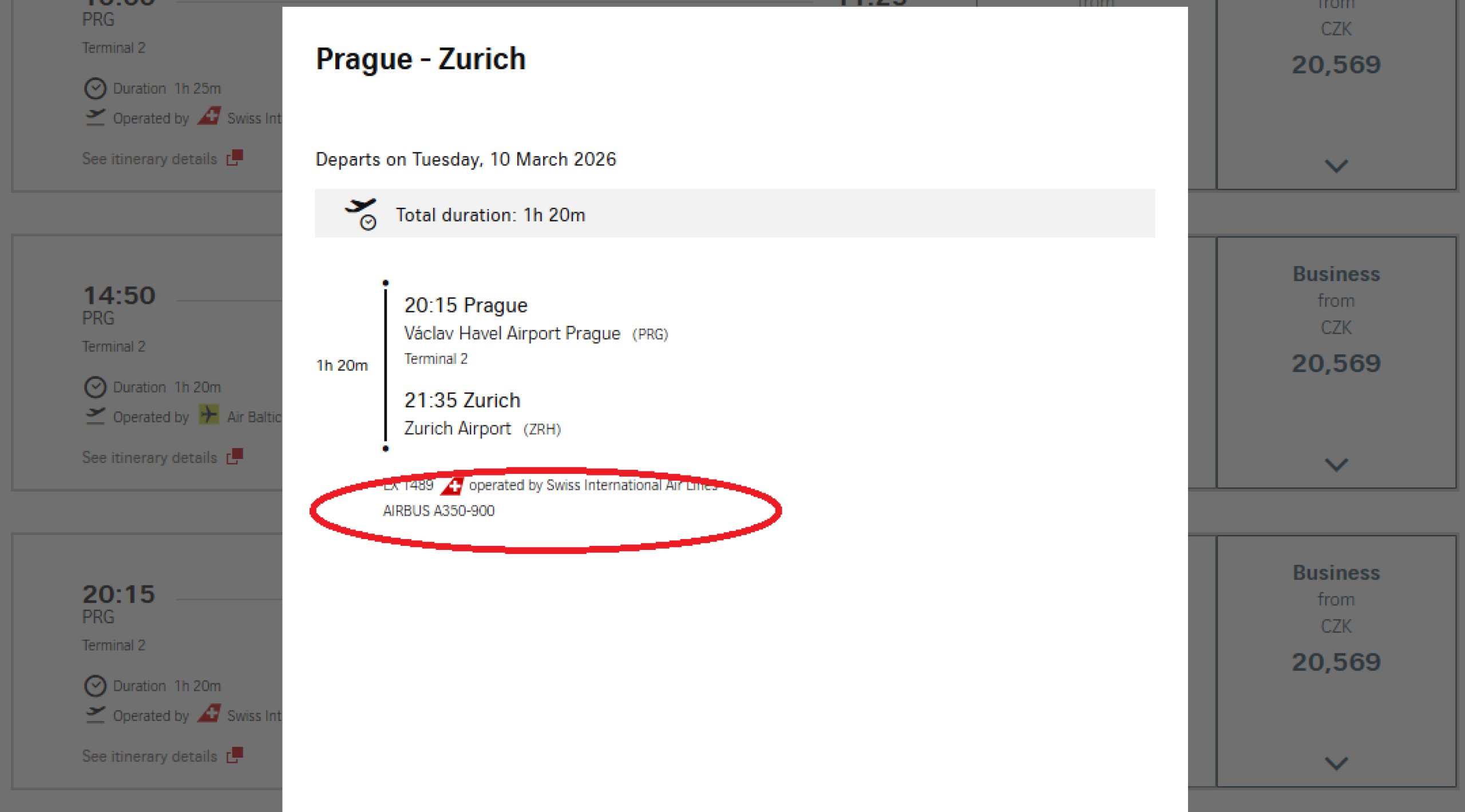 Prag ve Zürih arasında saatlik bir rotada geniş gövdeli uçmak nadir görülen bir durumdur. Ve eğer A350 ile uçuyorsanız, normal Avrupa uçuşlarında karşılaşmayacağınız bir koltuk seçmek istersiniz.