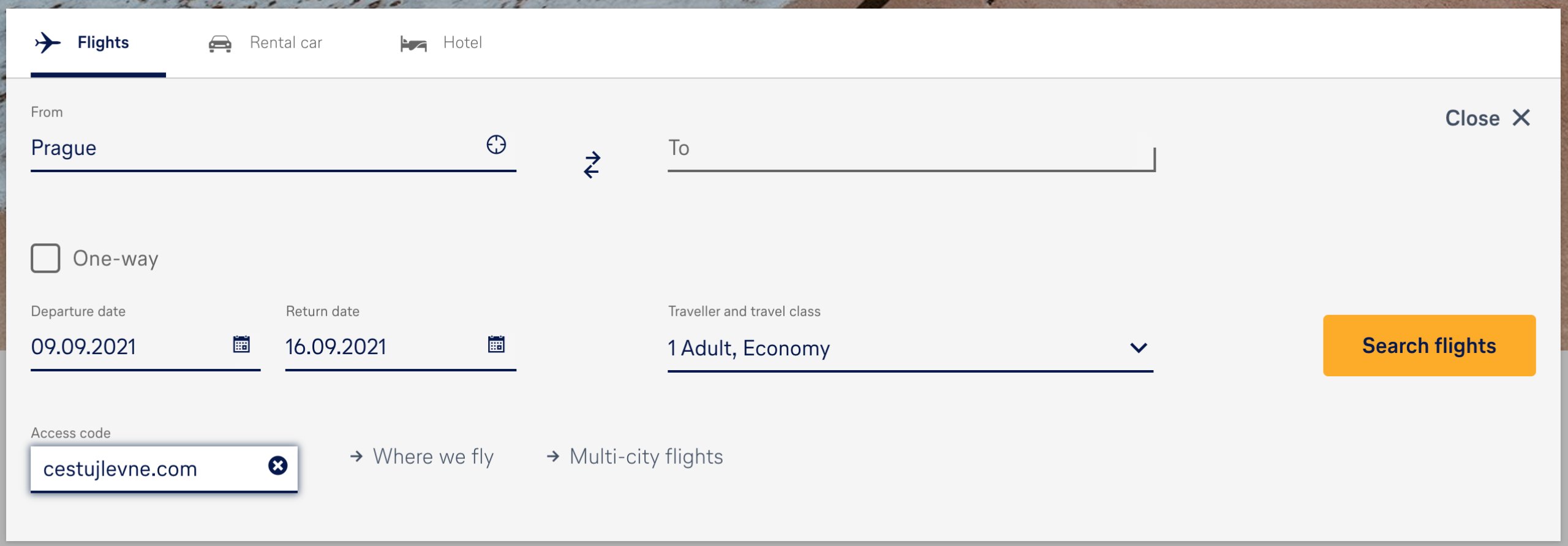 Lufthansa.com 'da indirimden yararlanmak basittir ve doğrudan uçuş arama motorunda yapılır. Varış noktanıza uçuş aramadan önce, arama motorunda promosyon kodunun eklendiği bir metin alanını doldurun.