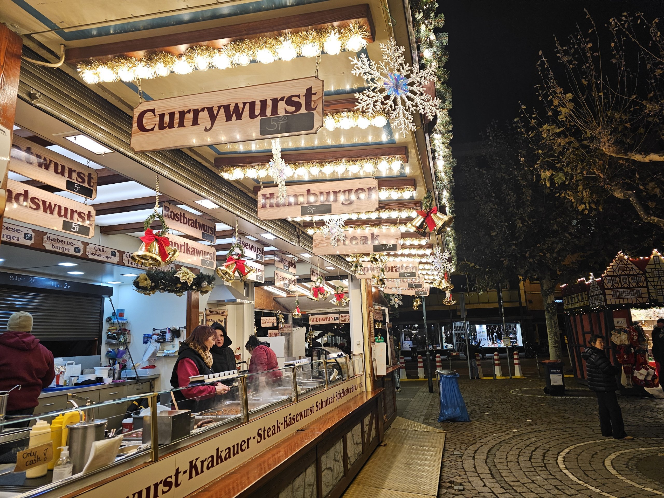 - ✅ Bir ağaç ve çok sayıda sıcak şarap tezgahı ile çoğu Noel atmosferi