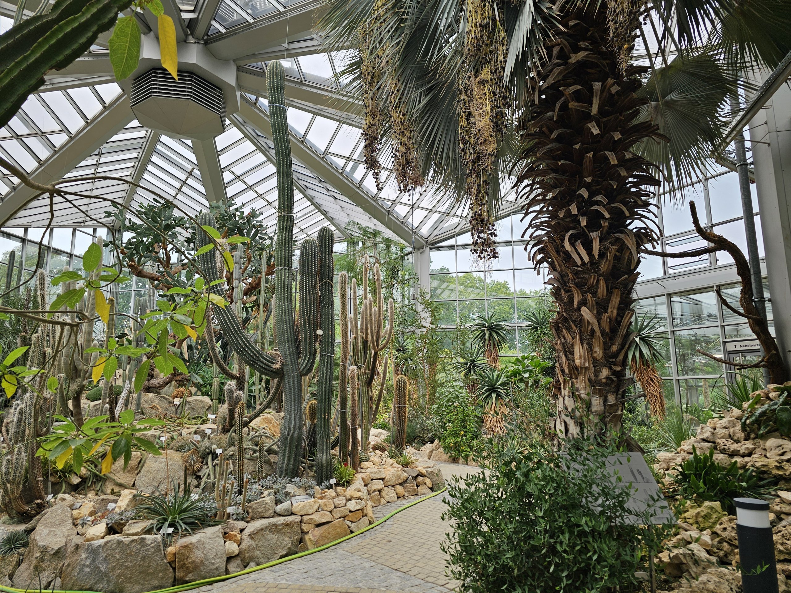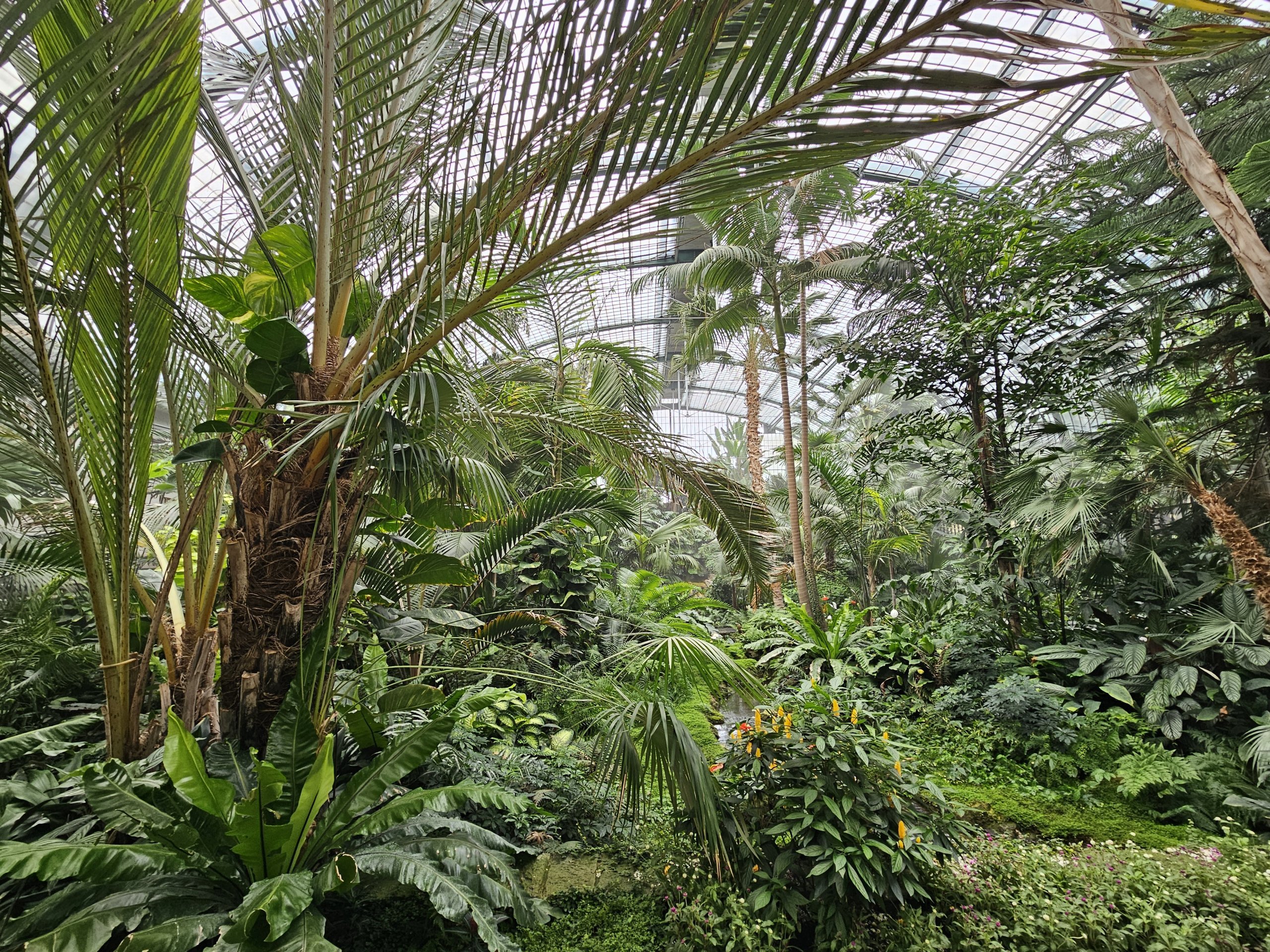 Palmengarten'ın ana cazibe merkezi, birkaç bölüme ayrılmış devasa seralardır: