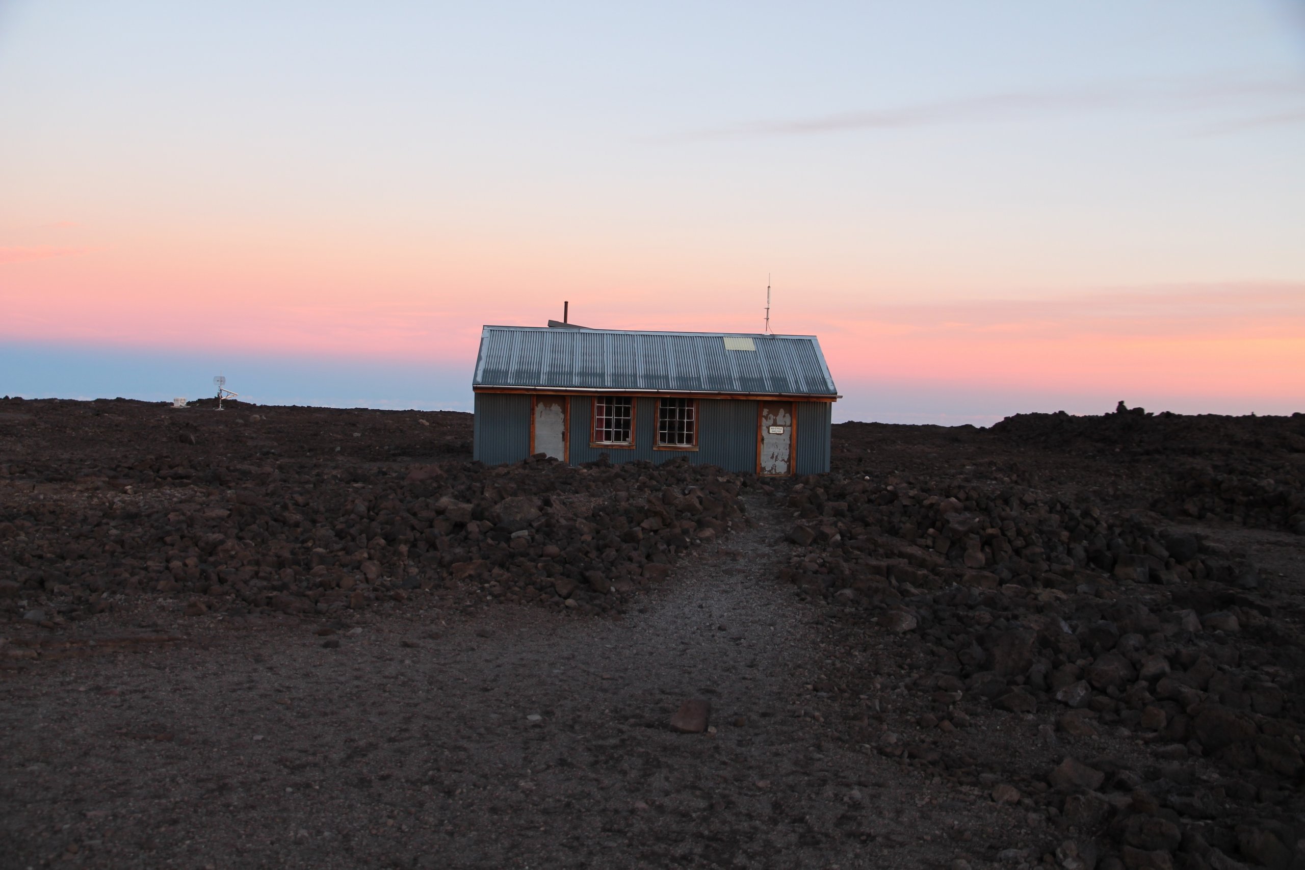 Buradan, Gözlemevi Yolu adı verilen bir patika, sizi zirveye götürecek kaba, katılaşmış lavlardan oluşan bir ay manzarası boyunca uzanır. İlk olarak, siyah, katı lavlarla dolu nefes kesici kraterden sadece birkaç yüz metre uzaklıktaki ranzalı küçük, tek odalı bir turist pansiyonu olan Summit Cabin'e ulaşacaksınız.