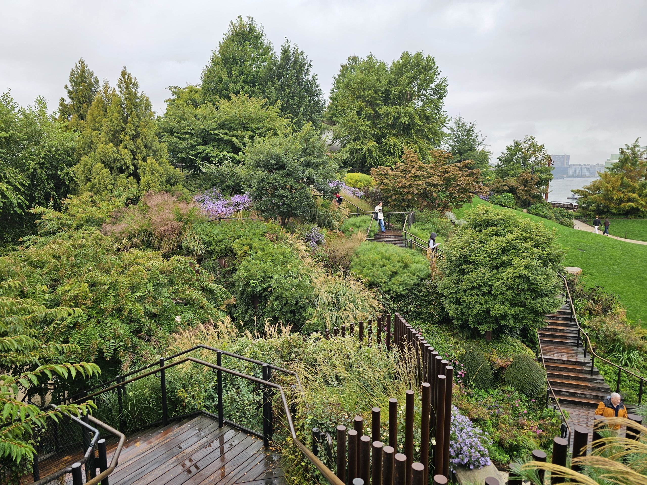Parkın en yüksek noktasında Hudson Nehri ve aşağı Manhattan'ın güzel bir manzarası vardır.