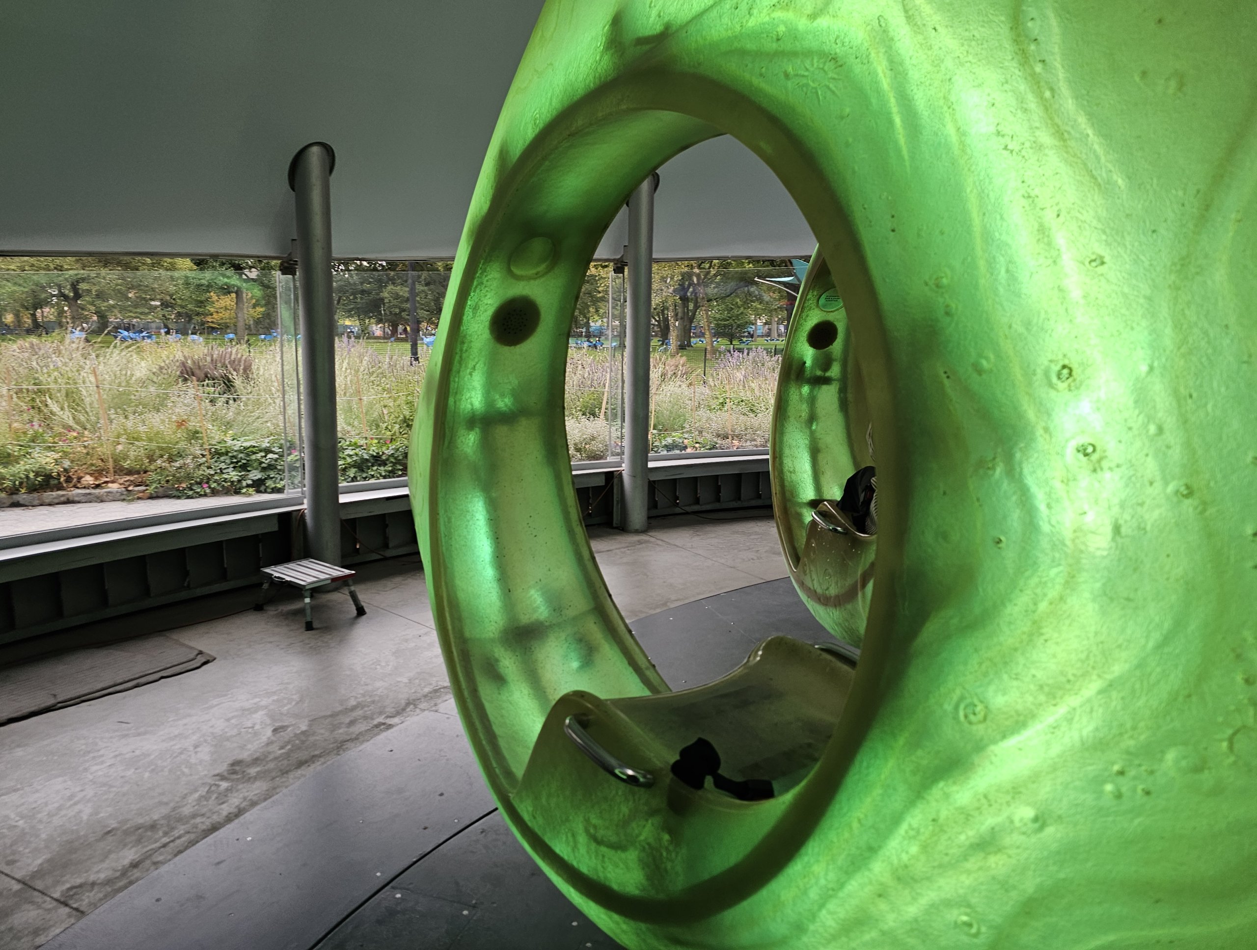 SeaGlass Design Carousel, Manhattan'ın güneyindeki Battery Park 'ta, Özgürlük Heykeli tekne iskelesinin yakınında yer almaktadır.