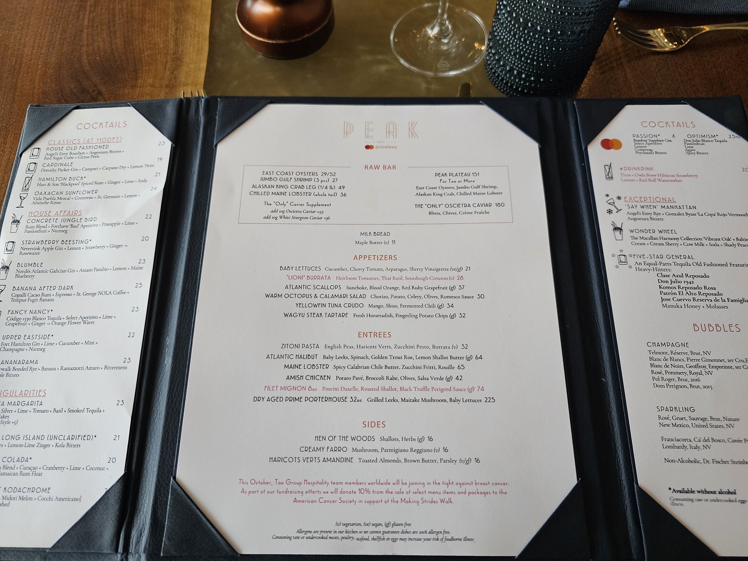 Menünün tamamını restoranın web sitesinde görebilirsiniz: peaknyc.com/restaurant-bars.