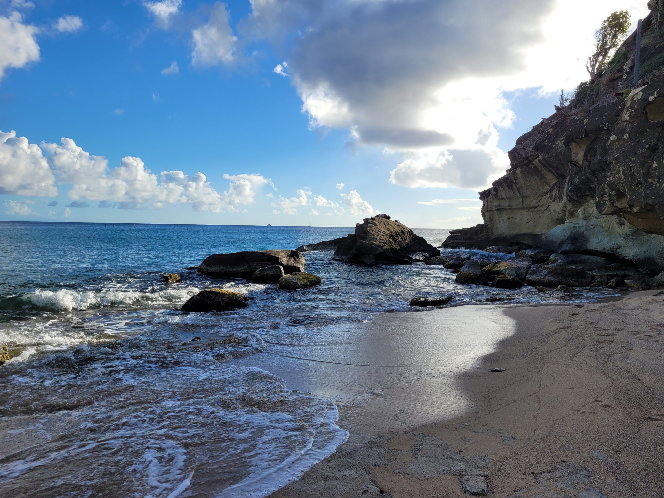 Karada daha canlı bir atmosfere sahip olan ancak denizi sakin olan Pigeon Point Plajından sıkılırsanız, buradan çitlerle çevrili bir yerleşim alanından geçerek tamamen farklı Windward Plajına yaklaşık 5 dakika yürüyebilirsiniz.