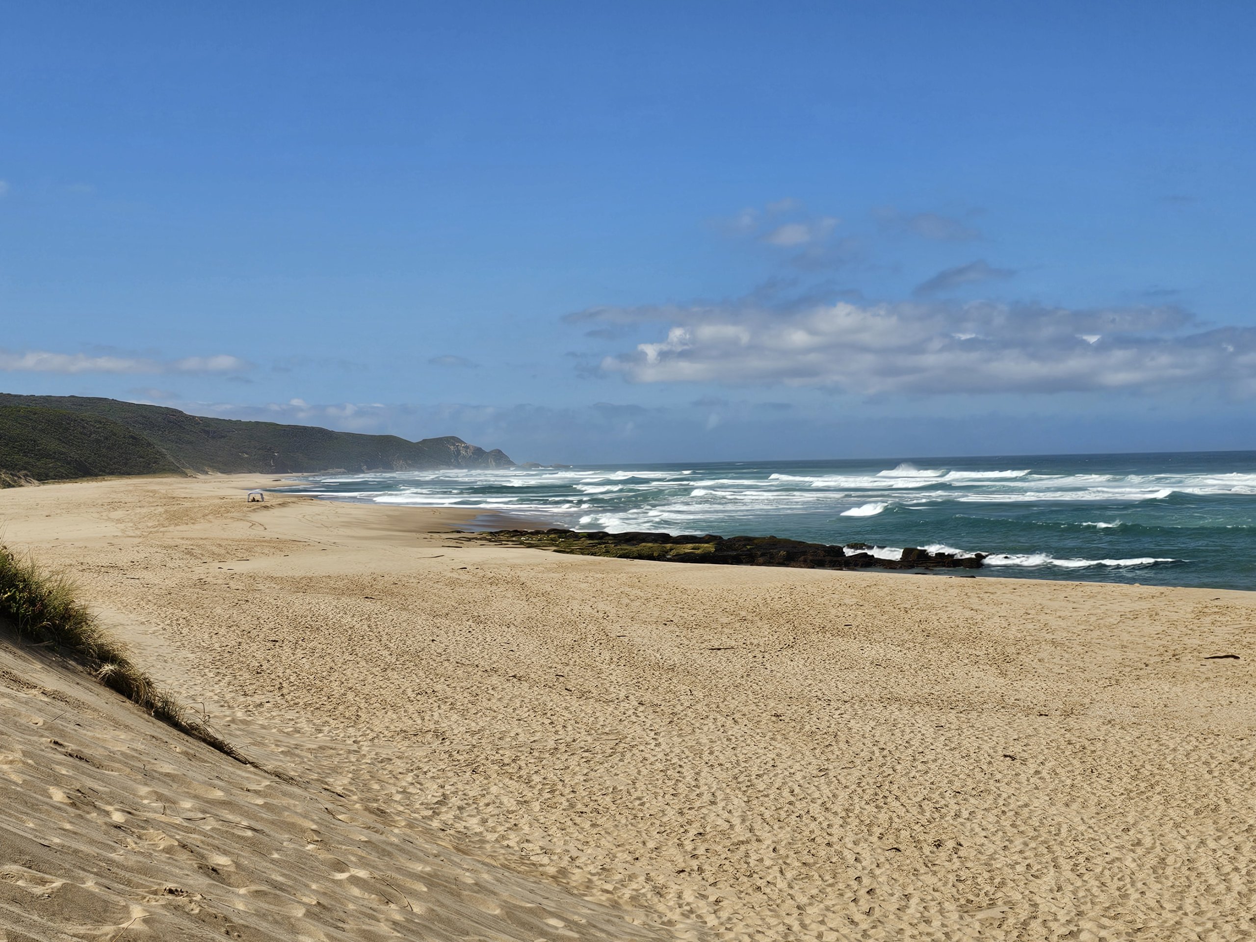 Geniş, boş bir kumsal, yeşil, alçak ağaçlarla kaplı kum tepeleri ve ormanlar ile büyük, bakımlı çiftliklerden oluşan inanılmaz pastoral bir inişli çıkışlı manzara.