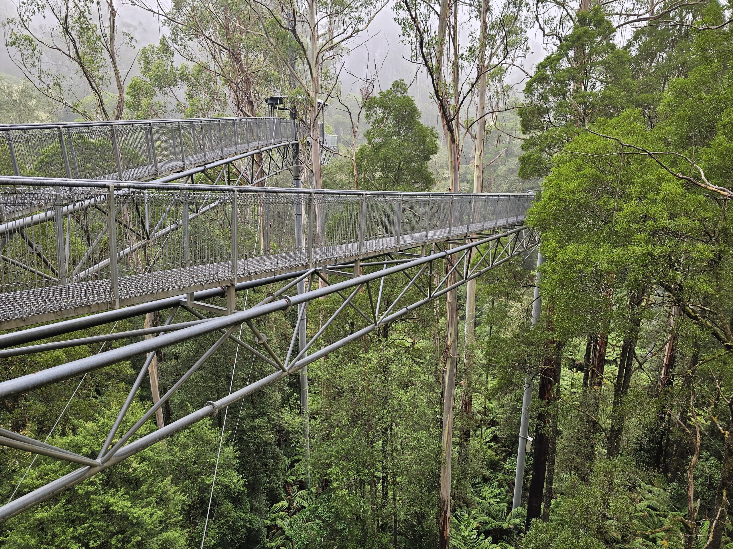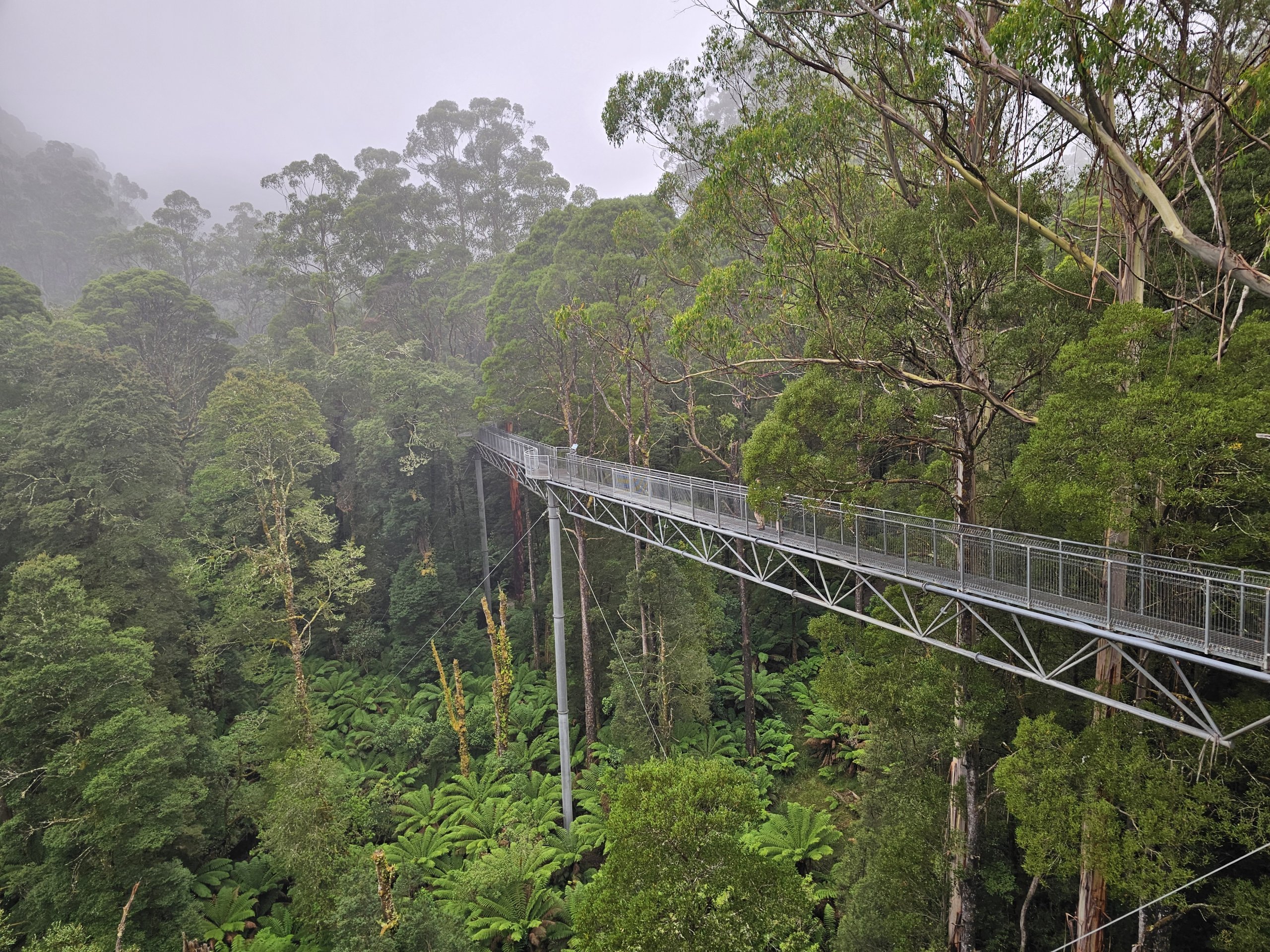 Asma çelik yürüyüş yollarında ağaç tepelerinde yürüyün ve zipline, Great Otway Ulusal Parkı'nın kalbinde yer alan Otway Fly Treetop Adventures tarafından sunulmaktadır.