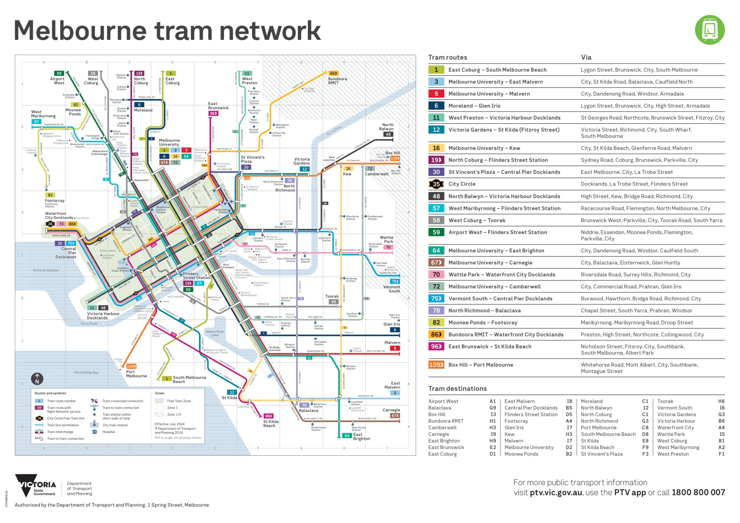 Ayrıntılar için ptv.vic.gov.au resmi web sitesini ziyaret edin.