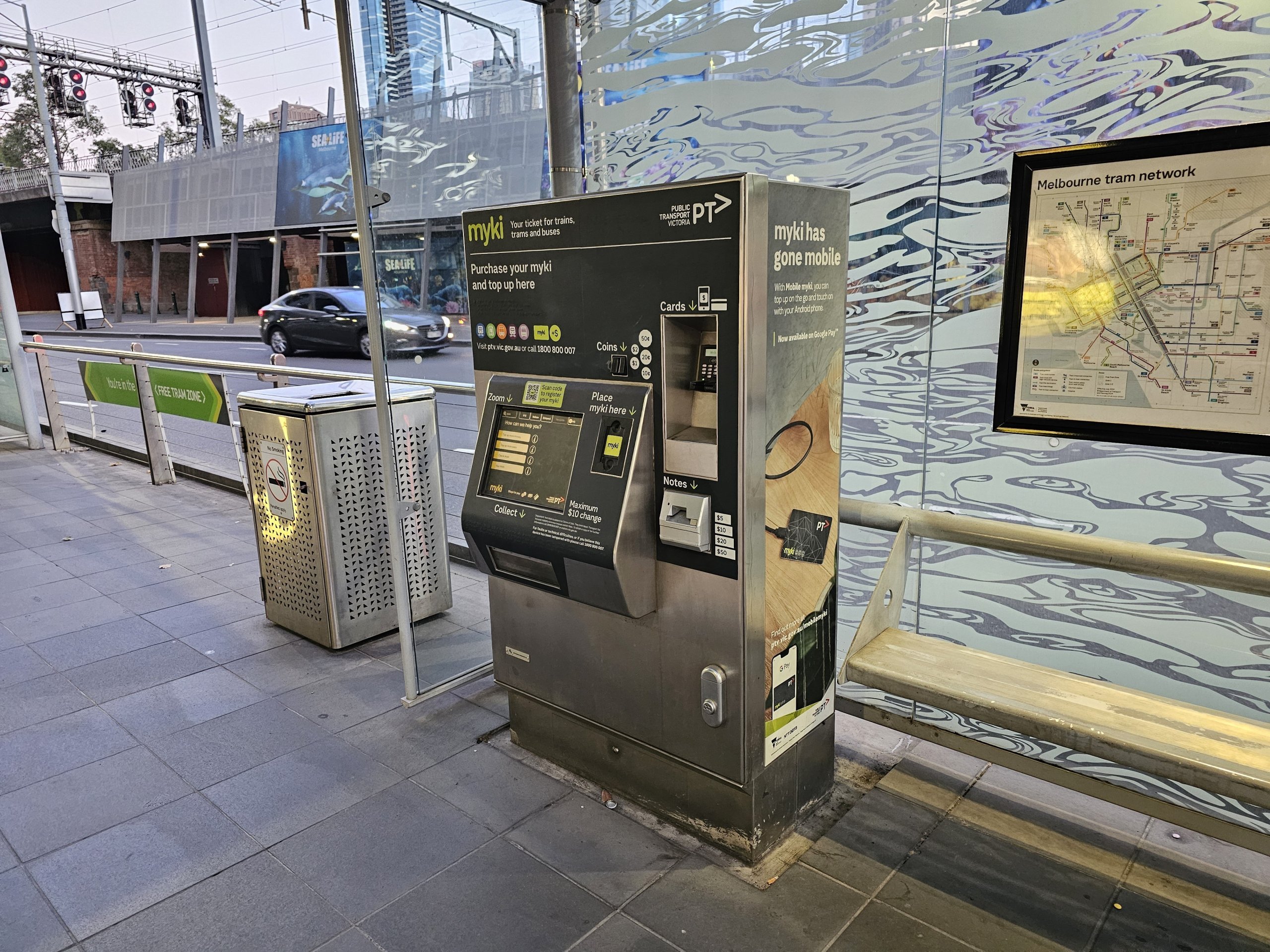 Ücretinizi ödemek için bir myki kartı satın almalı ve yüklemelisiniz (bu nakit olarak da yapılabilir).