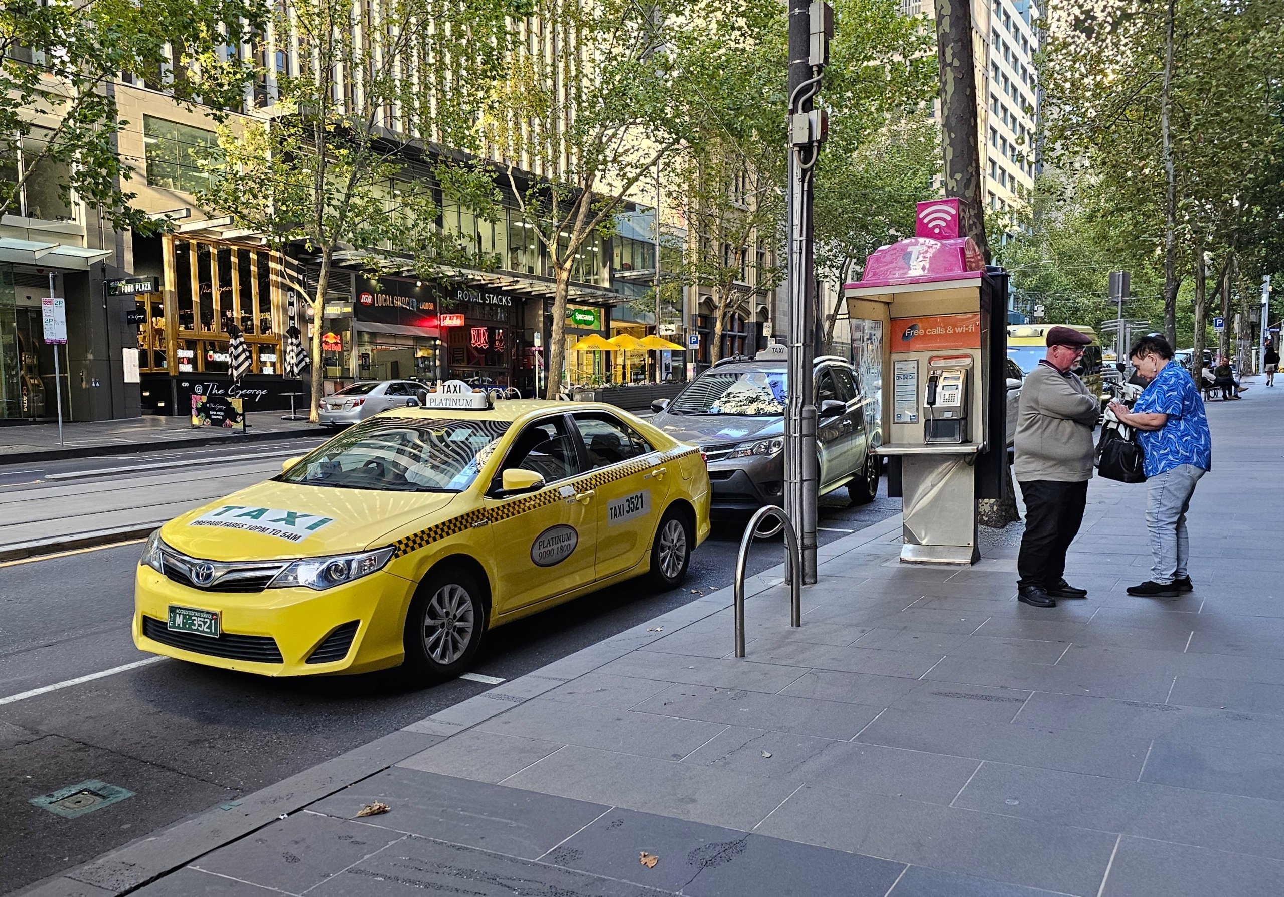 Melbourne sokaklarında çok sayıda taksi bulunmaktadır, ancak şehir merkezinin dışında nispeten az sayıda taksi vardır ve sokakta el sallayarak sizi durduracak bir taksiye güvenemezsiniz.