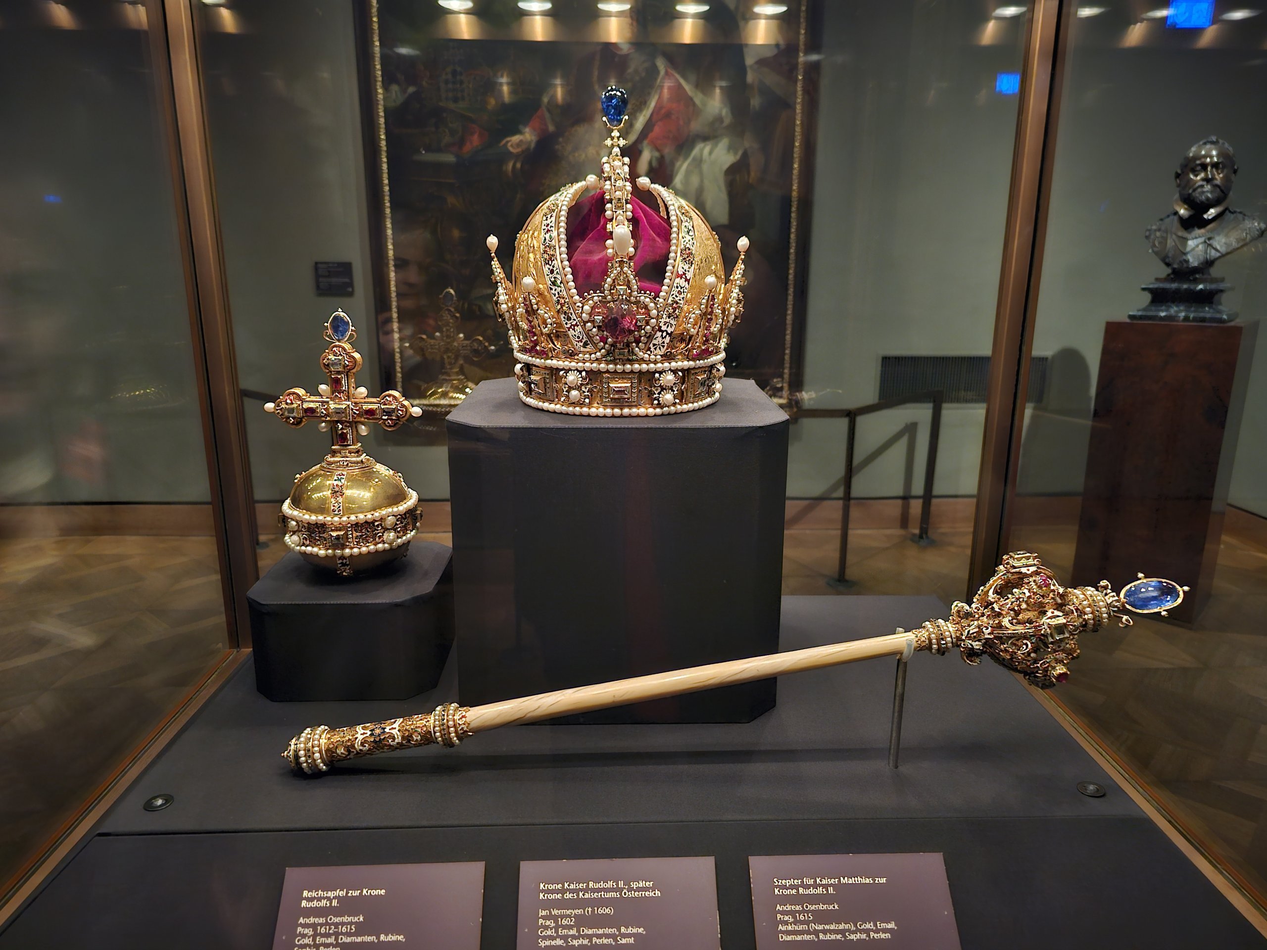 İkinci en değerli koleksiyon ise Avusturya imparatorlarının taç giyme törenleri için tasarlanan mücevherlerdir. 17. yüzyılın başlarından kalma bu mücevherlerin en önemli üç tanesi Viyana'da sergilenmektedir: imparatorluk tacı, asa ve elma.