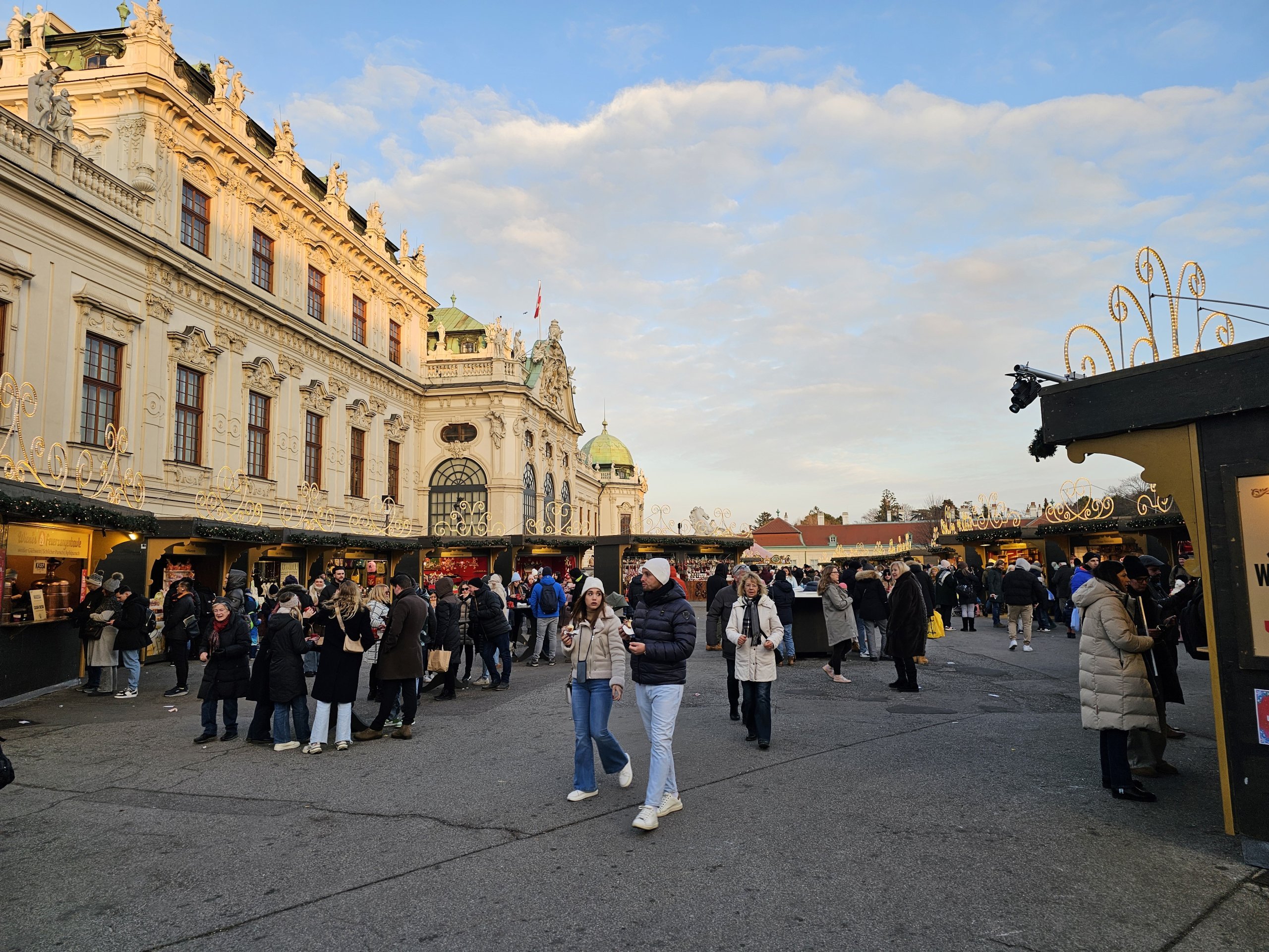 - Belveder Kalesi'nde Noel Köyü - Oberes Belveder kalesinin barok fonunda kale parkına yayılmış birkaç düzine tezgah.