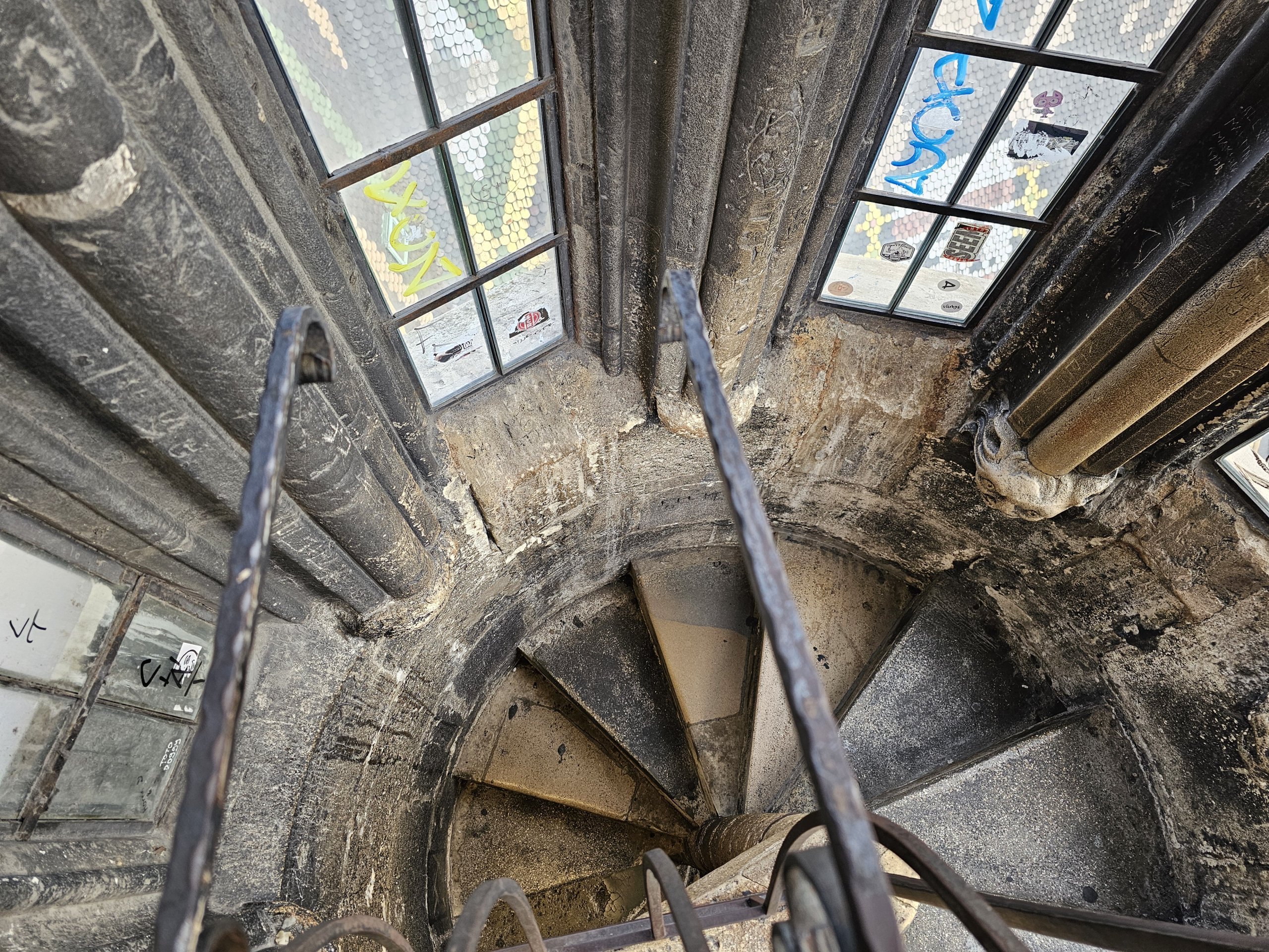Güney Kulesi'ndeki bakış açısı sıkışıktır ve sadece 4 küçük pencere ile tamamen iç mekandadır. Zirveye çok dar bir spiral merdivenle 343 basamak çıkılmaktadır.
