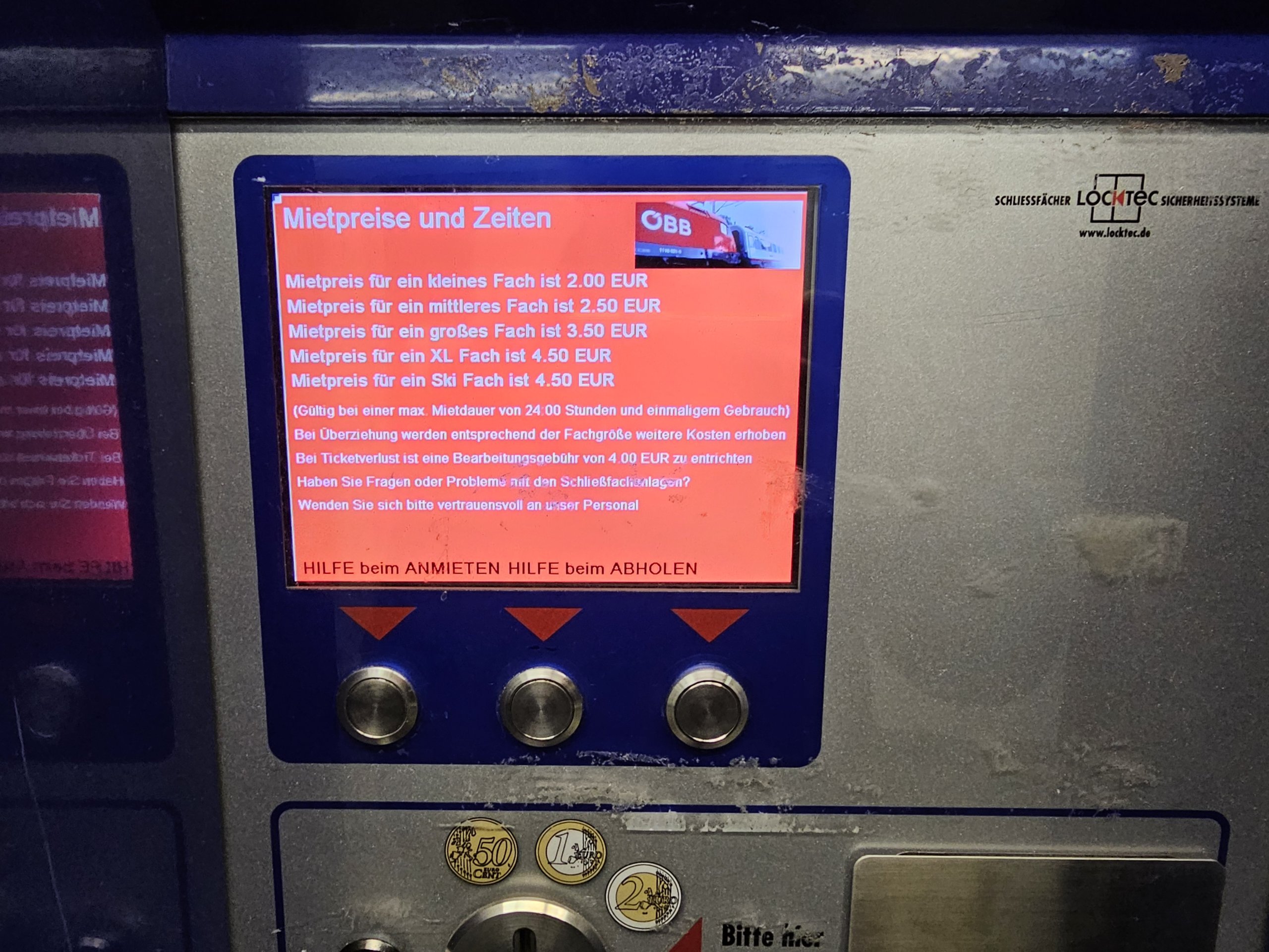 Yeraltında 1. katta bulunurlar ve bagajınızın boyutuna bağlı olarak 24 saat için 2 avro ila 4,50 avro ödersiniz.