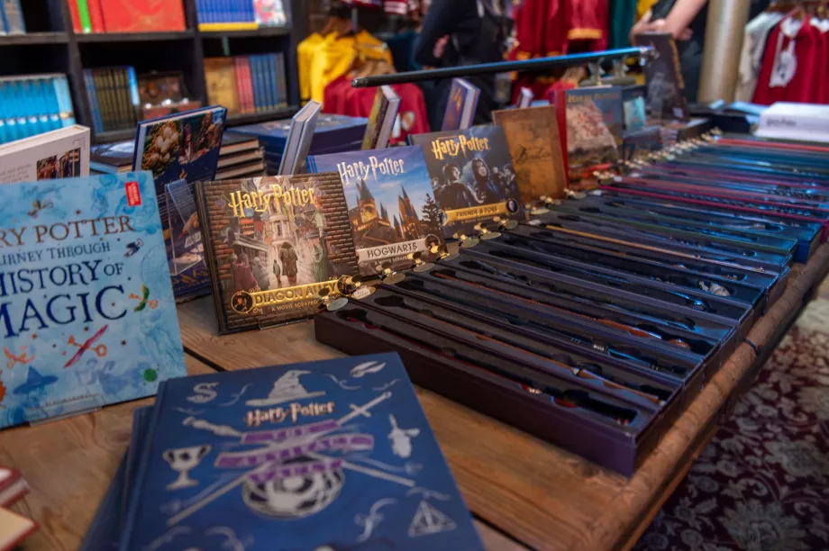Harry Potter hayranları, resmi koleksiyon ürünleri satan ve kesinlikle "Hogwarts" iç tasarımına sahip olan The Great Wizard veya Museum Context gibi çeşitli temalı dükkanlar bulacaktır. Ayrıca posta baykuşları, sihirli değnekler ve ölüm kalıntılarının replikaları da bulunmaktadır.