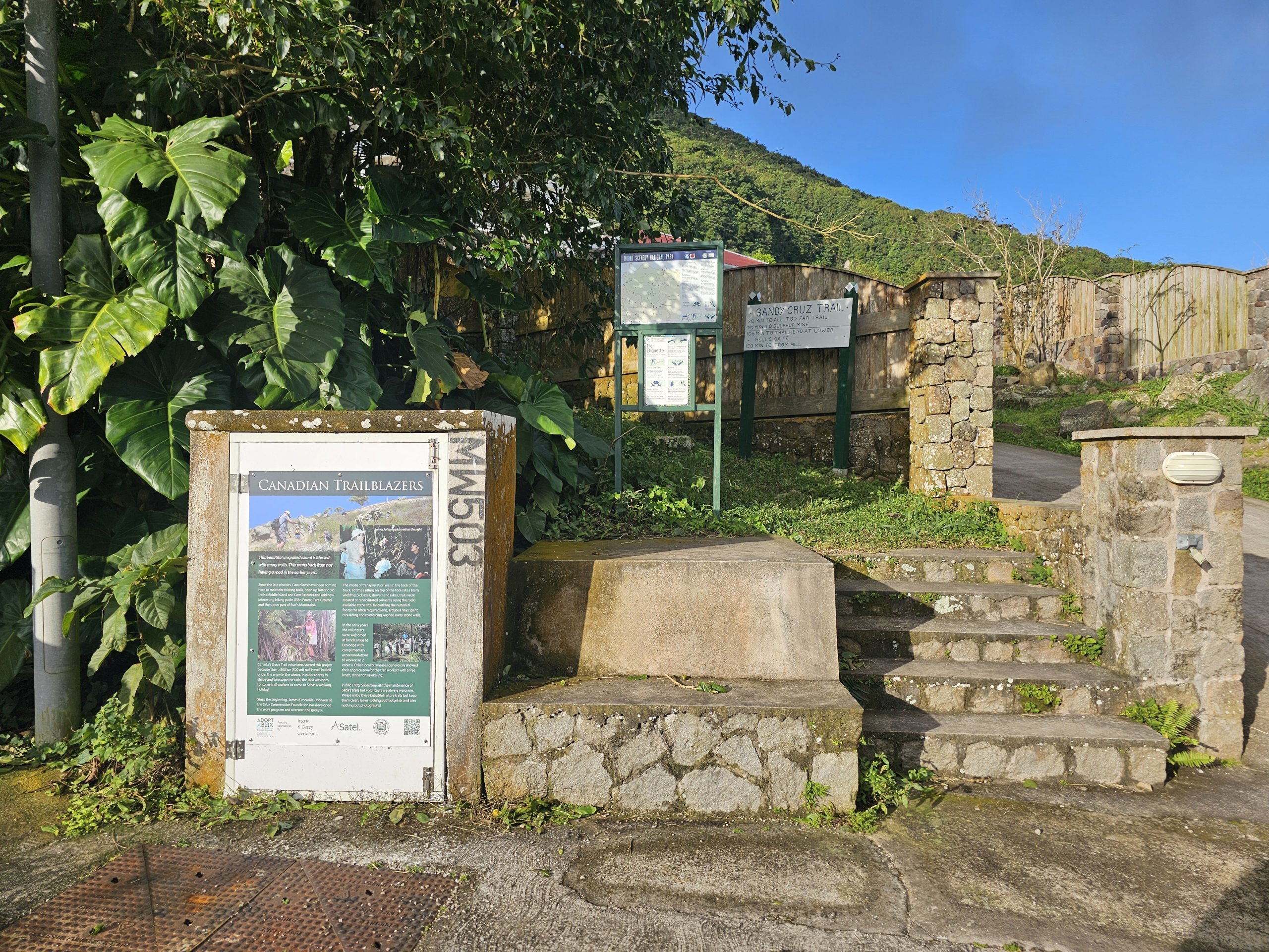 Tüm resmi patikalar bakımlıdır ve tehlikeli bölümlerde işaret levhaları, korkuluklar veya ahşap ve taş merdivenlerle donatılmıştır ve Windwardside'dan Mounte Scenery'ye giden en ünlü patikada birkaç bank ve barınak bile vardır.
