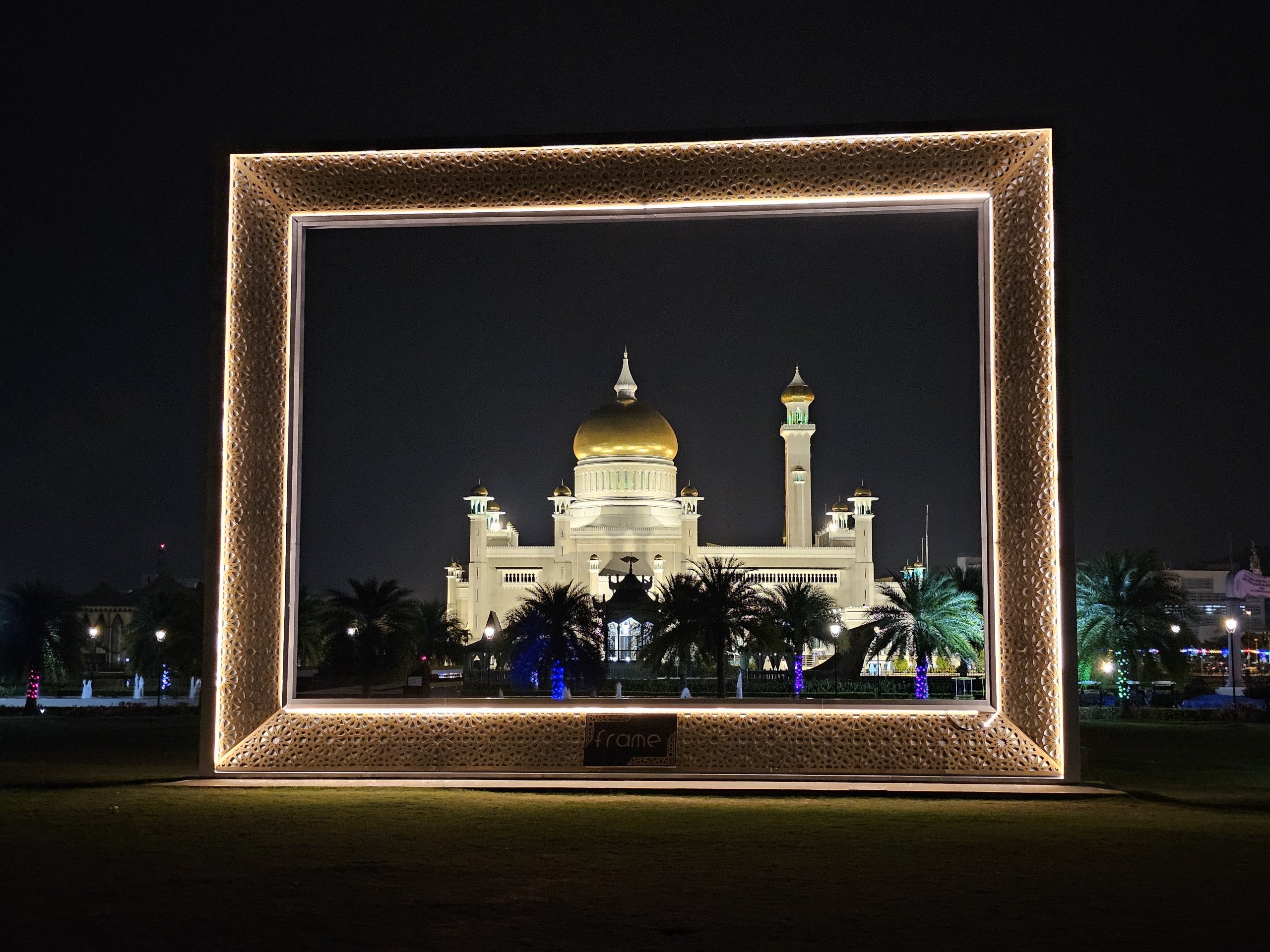 Popüler bir turistik cazibe merkezi olan "Frame Brunei Darussalaam", 9 metre yüksekliğinde çerçeve şeklinde bir yapıdır.