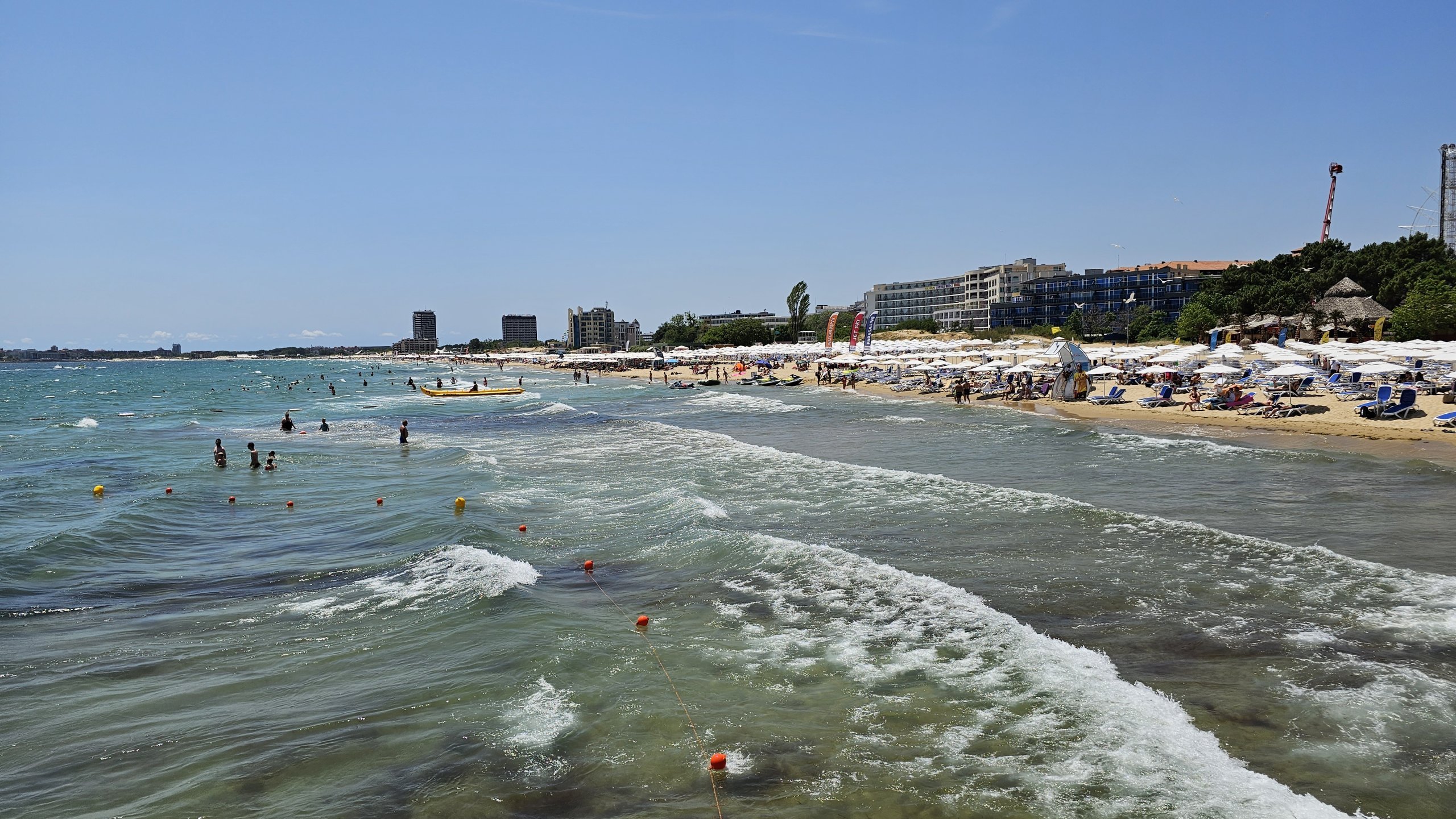 Ana plaj, Sunny Beach'teki su sporlarının merkezidir. Burada tek bir şirket tarafından işletilen birkaç site bulacaksınız, bu nedenle fiyatlar ve eğlence türleri plajın her yerinde aynıdır.