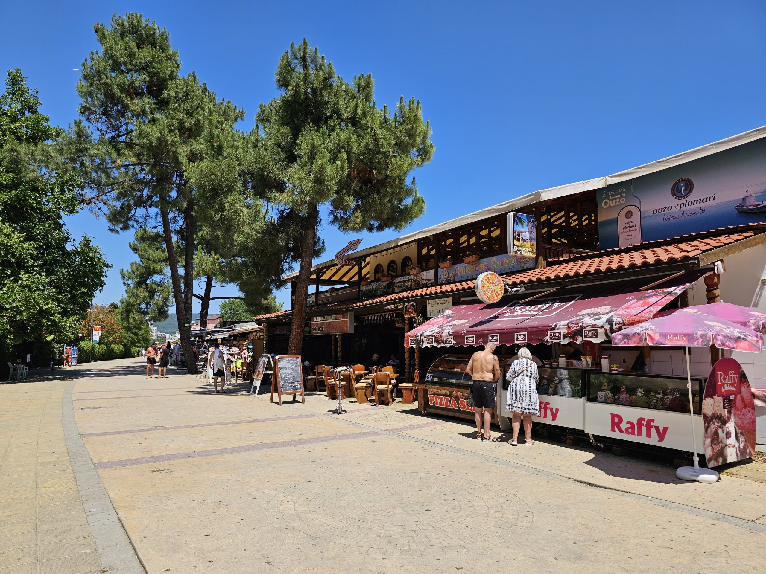 Ana plaj, kasabaya hemen temas eden ve oteller, mağazalar ve turistik yerlerin bulunduğu gezinti yolu boyunca uzanan kısımdır. Bu ana plaj yaklaşık 4,5 km uzunluğundadır ve kuzeydeki Sveti Vlas beldesinde sona erer.