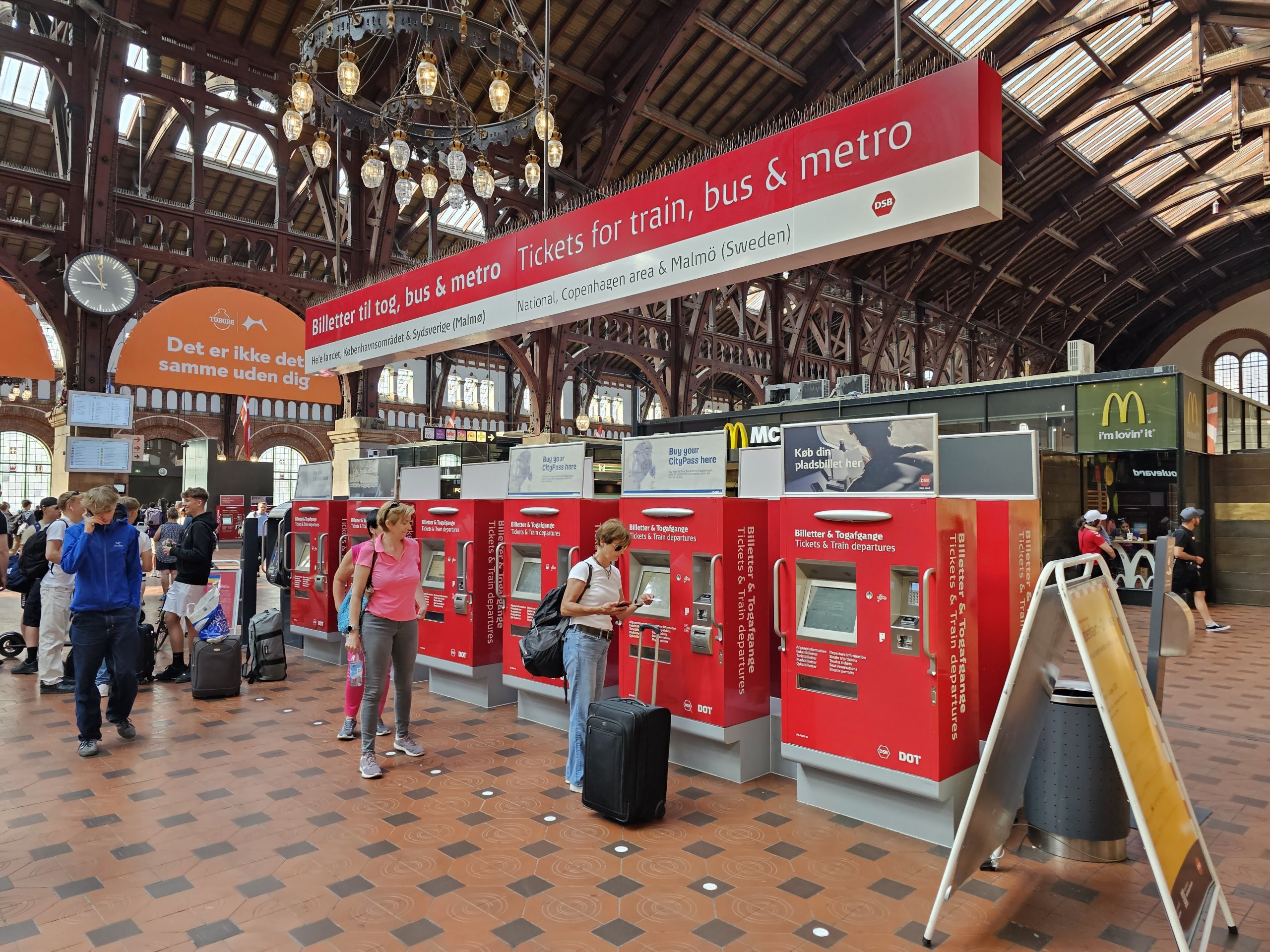 Bilet makineleri kare şeklinde ve gümüş rengindedir. Bunlar yeraltı istasyonlarında ya da tren istasyonlarında bulunur ve kırmızı DSB bilet makineleri ile tamamlanırlar. Kopenhag'da toplu taşıma için otobüs veya metroda geçerli olan biletler de satın alabilirsiniz.