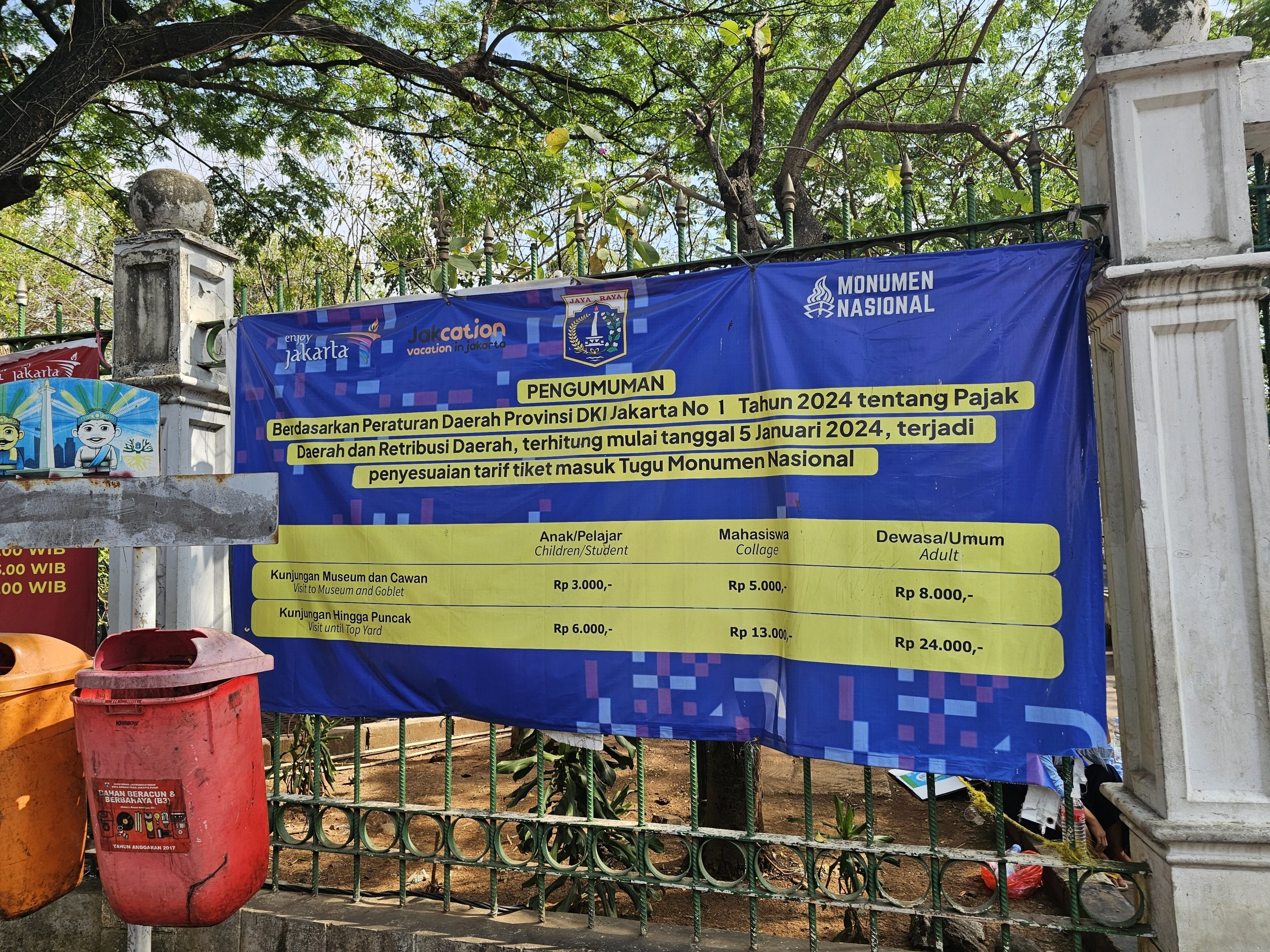 Ne yazık ki, Merdeka Meydanı'ndaki Ulusal Anıt'ın geniş çevresindeki parkın tamamı Monas'ın kendisi ile aynı çalışma saatlerine sahiptir.