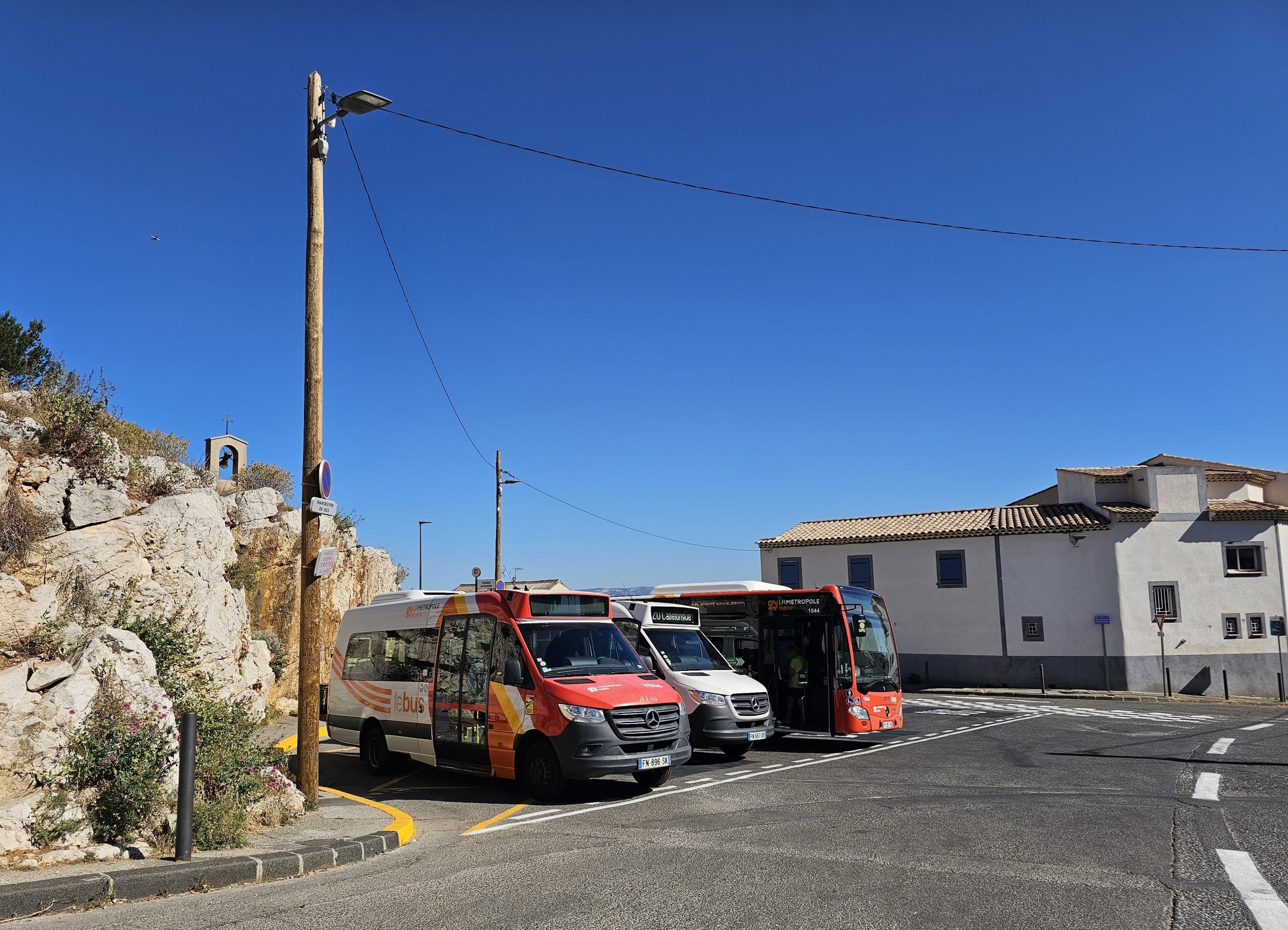 - 20 - merkezden değil, ancak küçük minibüsler buradan 19 numaralı hatta bağlanır ve Les Goudes ve Callelongue'ye doğru dar yol boyunca devam eder