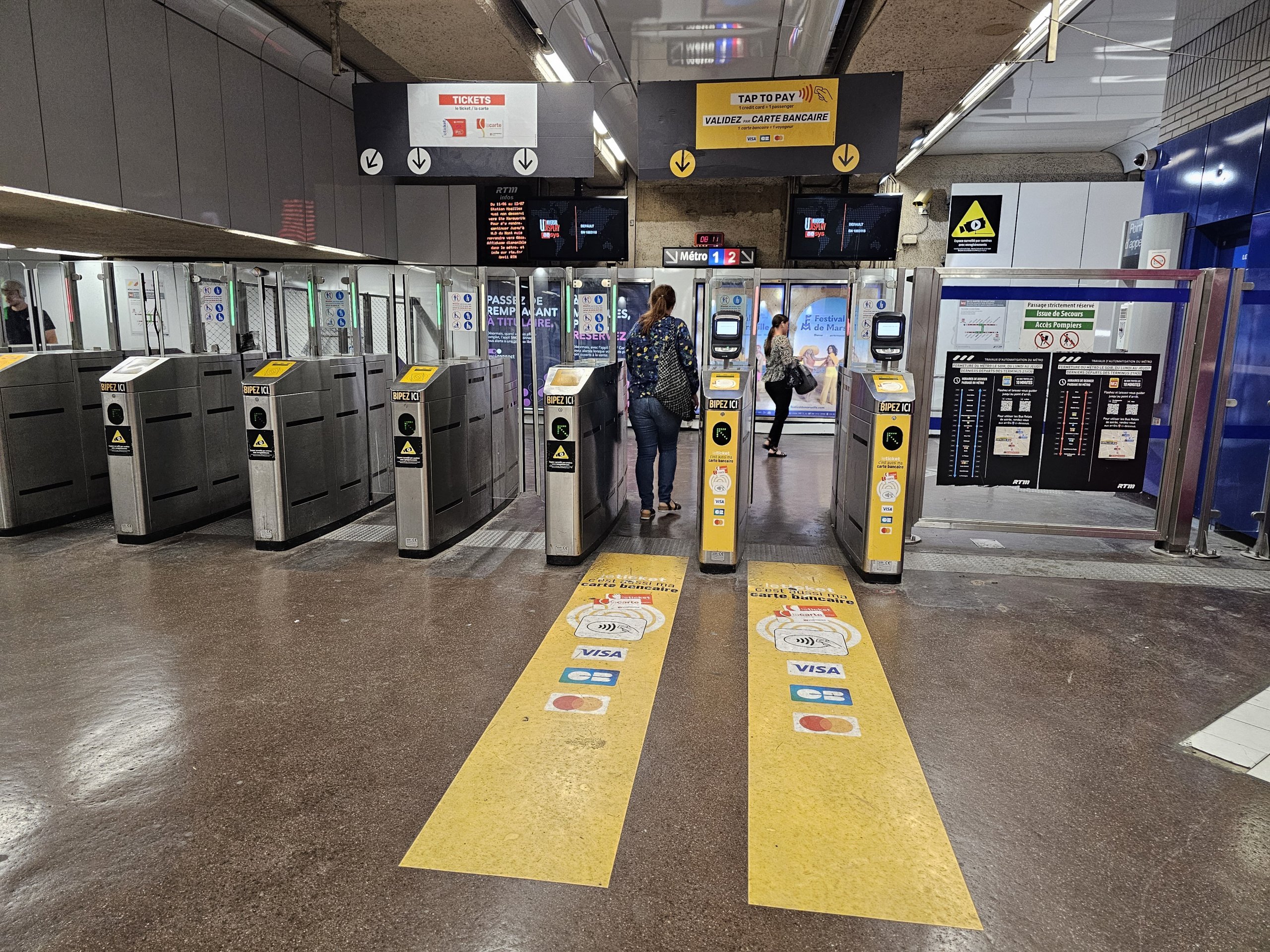 Metroya binerken veya metrodan çıkarken, turnikeler bilet/kart takılmadan otomatik olarak açılır.