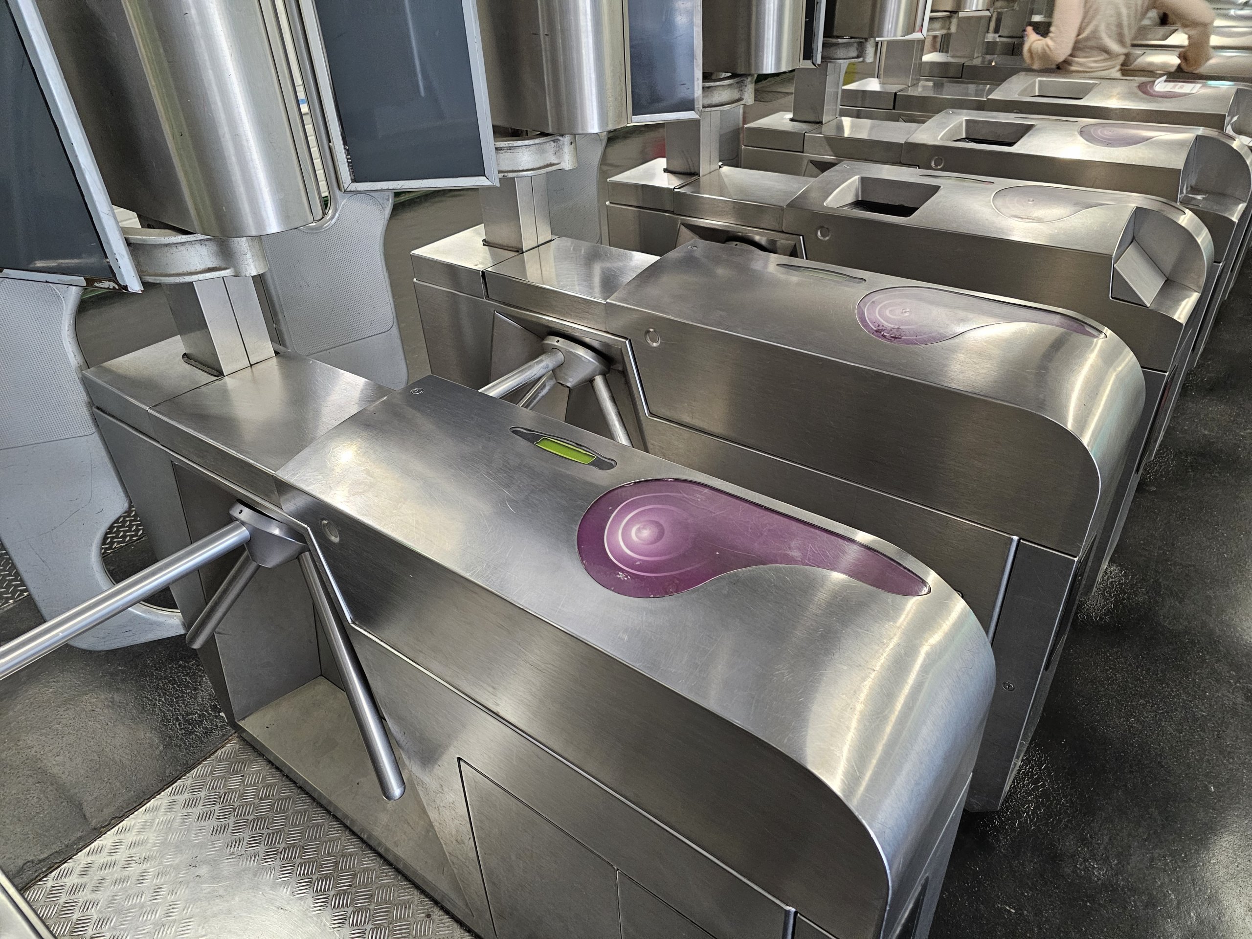 - Plastik Navigo kartları - bunları turnike üzerindeki mor okuyucuya takarsınız