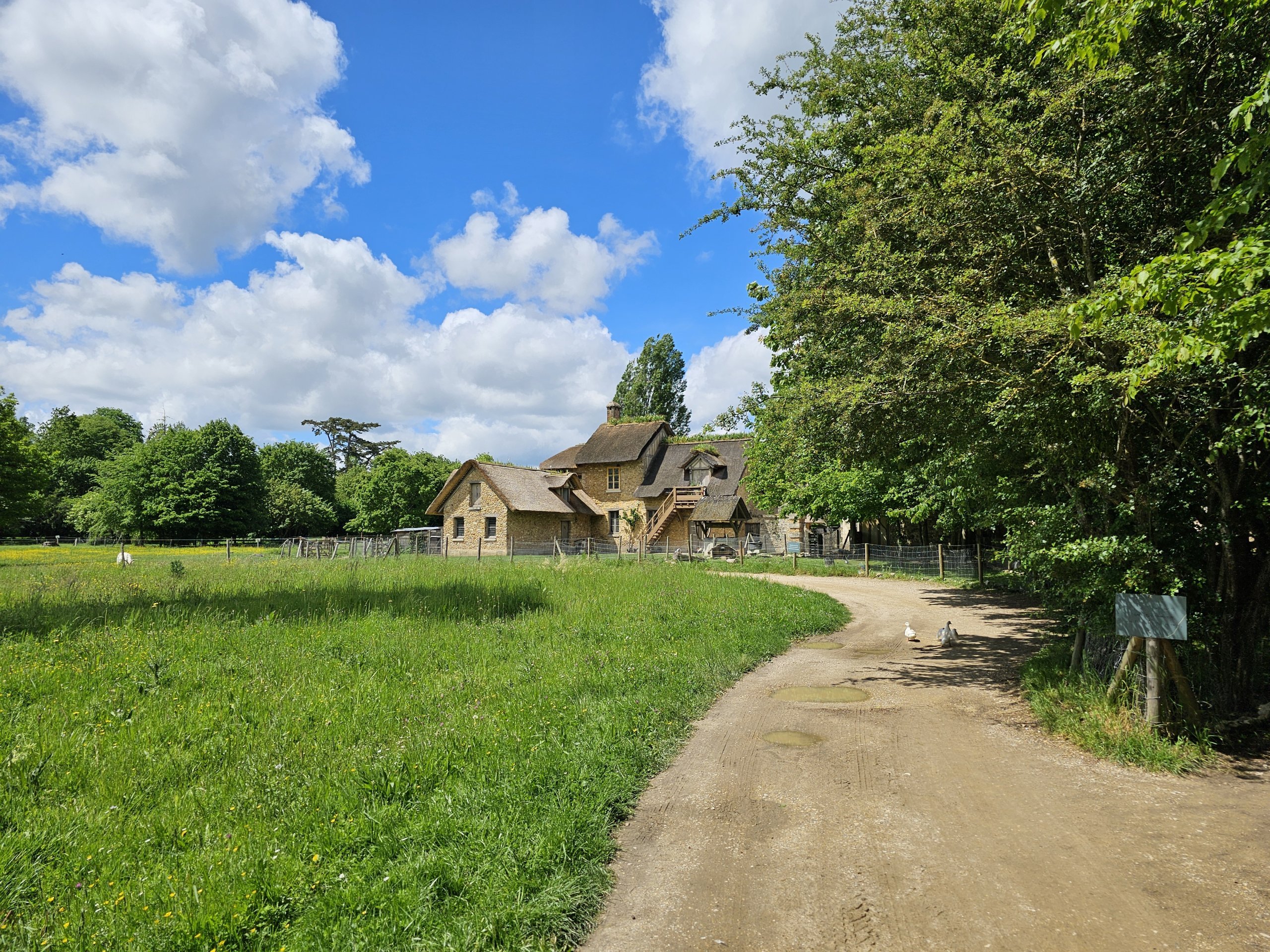 Petit Trianon'a yaklaşık 5 dakikalık yürüme mesafesindeki Hameau de la Reine çevresindeki pastoral köy, şato bahçeleri (yani ücretli giriş alanı) içerisinde yer almaktadır.