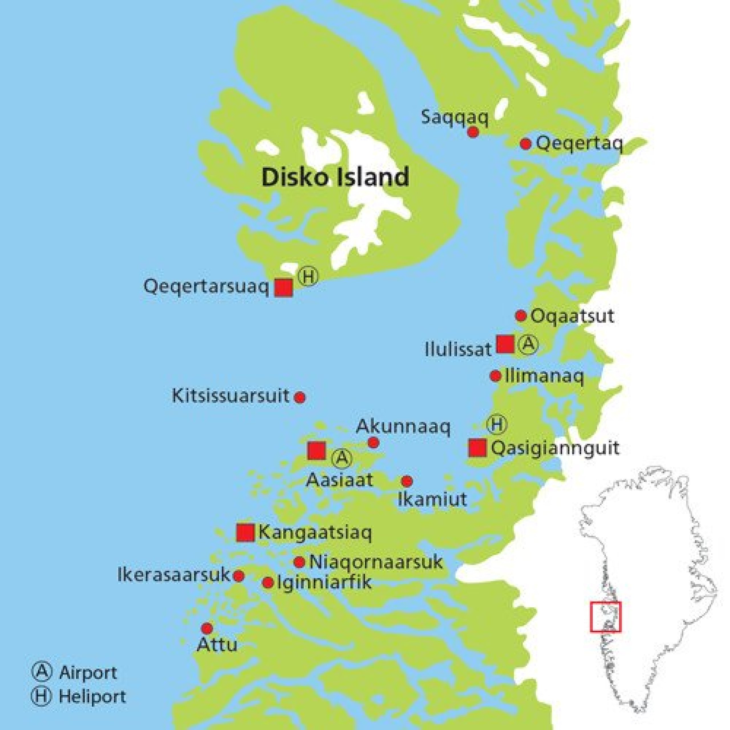 - Disko Körfezi - çoğunlukla Ilulissat'ı Aasiaat, Ilimanaq, Qeqertarsuaq, Qasigiannguit, Akunnaaq, Qeqetaq, Kitsissuarsuit, Kangaatsiaq ve diğerleri gibi çevre kasabalara bağlar.