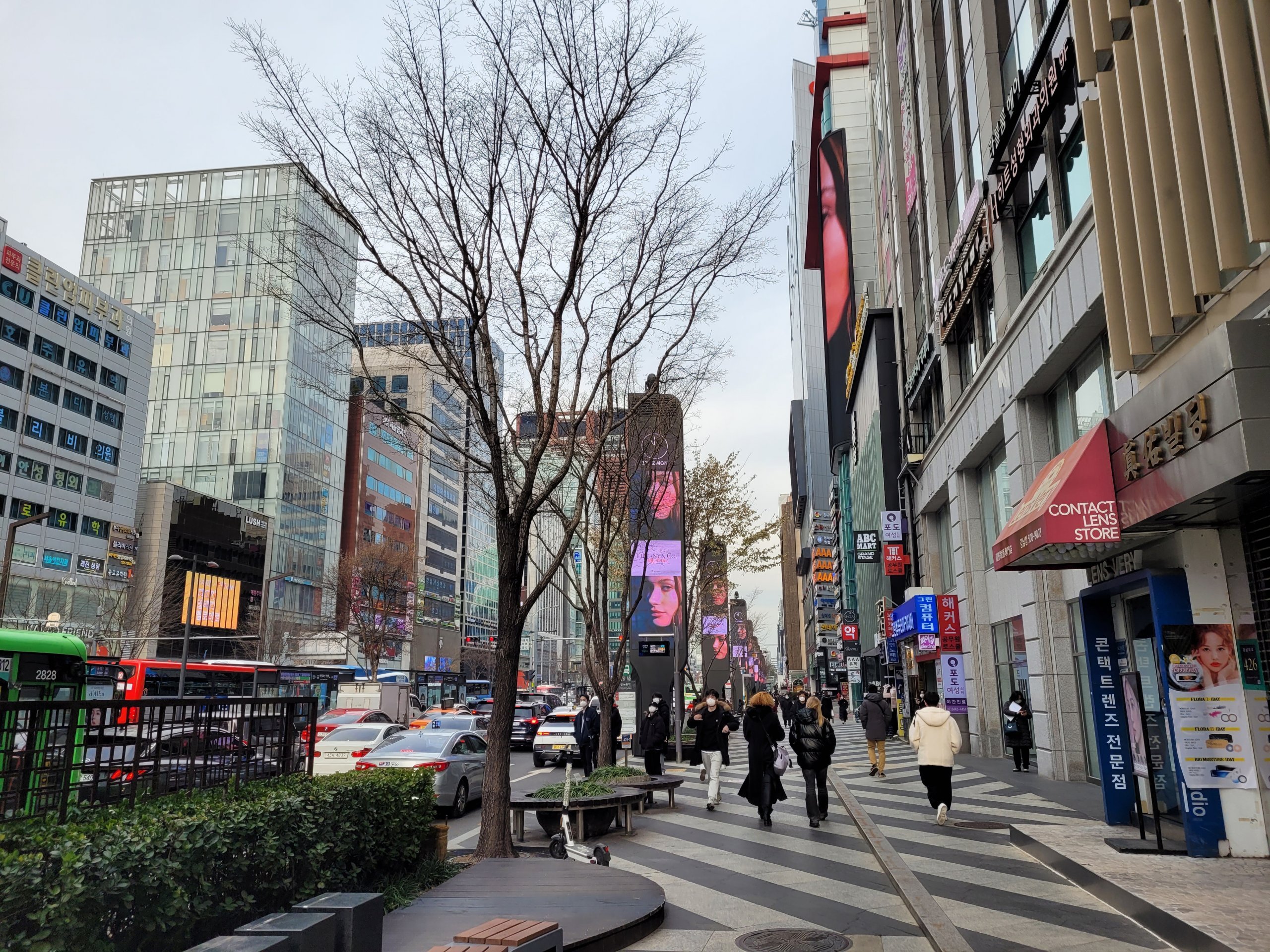 En hareketli bölge Gangnam metro istasyonunun kuzeyindeki Tehran-ro 1-gil caddesidir.