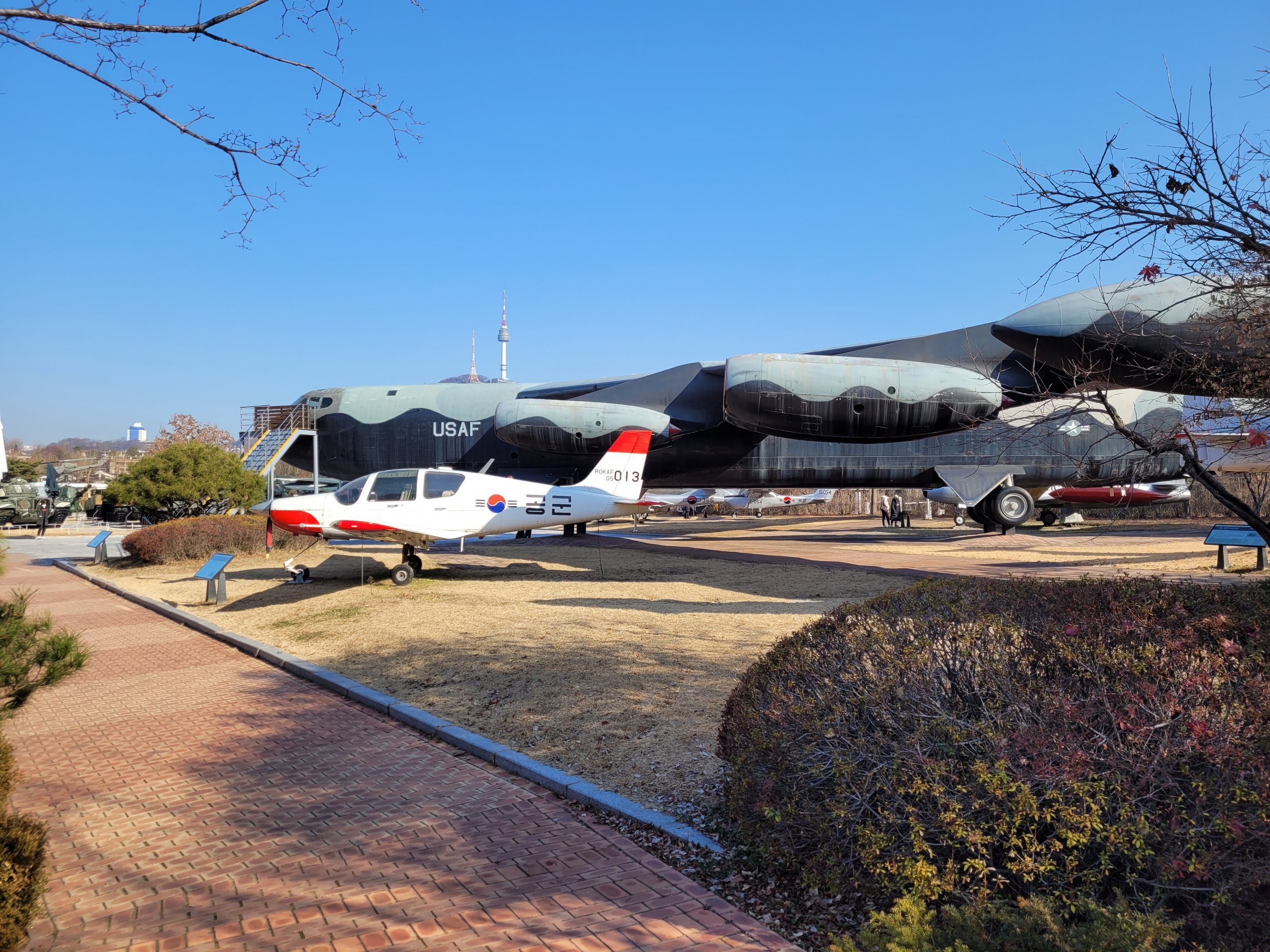 Ana binanın sağında daha büyük askeri teçhizattan oluşan oldukça büyük bir açık hava sergisi bulacaksınız. En önemli mücevher devasa bir B-52 bombardıman uçağı ve birkaç düzine başka uçak, helikopter, tank, zırhlı araç ve silah sistemidir.