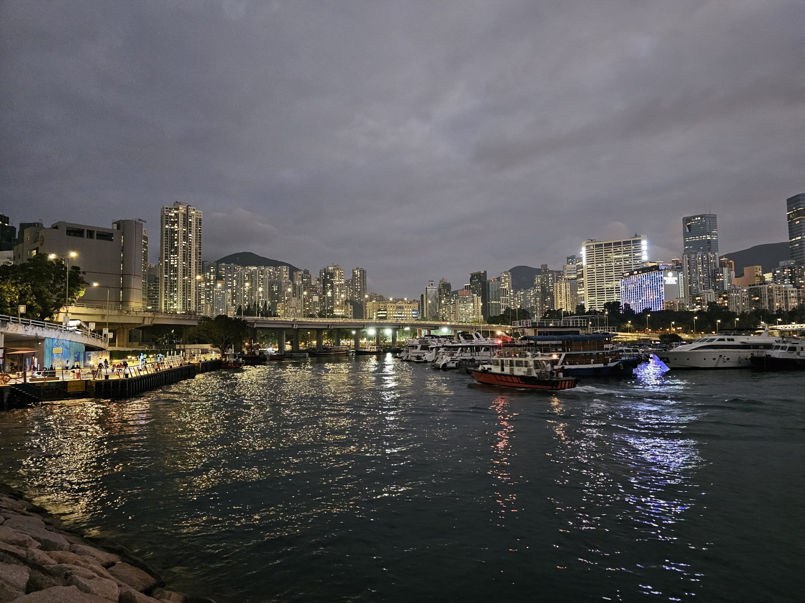 Causeway Bay'deki East Coast Park'ın iskelesi ve gezinti yolu, Hong Kong silüetine bakan en güzel noktalar arasındadır.